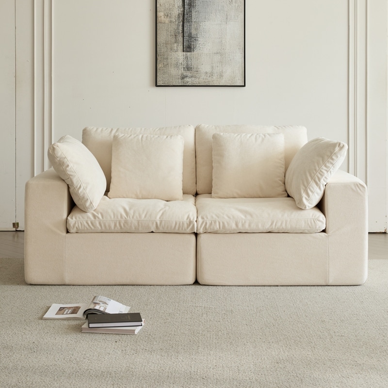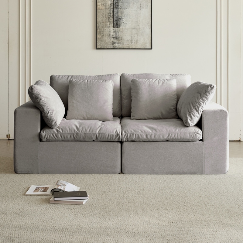 90.55" Cloud Sofa, Convertible Chaise Lounge Sofa with Soft Pillows Upholstered Deep Seat Modular Sofa with Curved Armrests