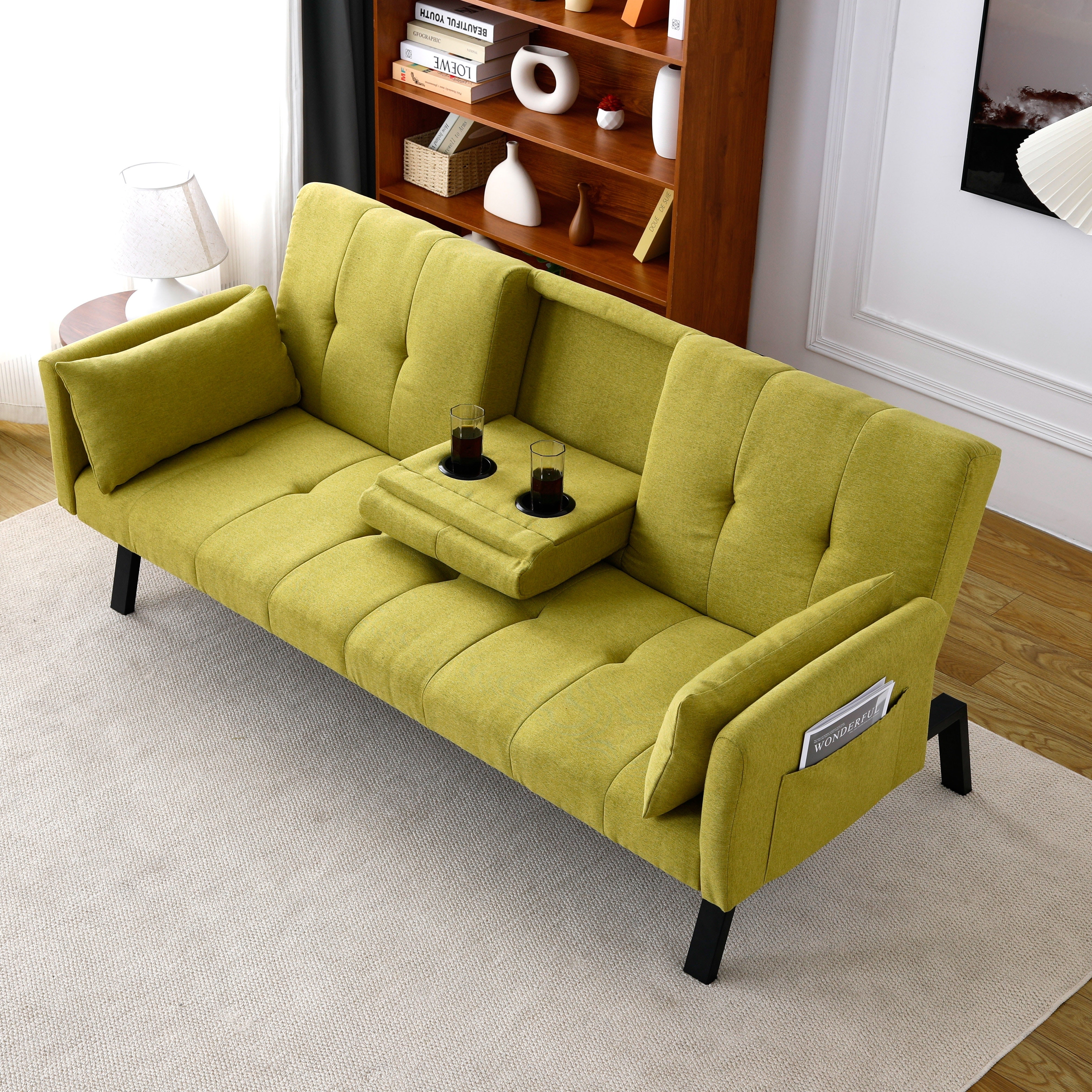 2-in-1 Tufted Loveseat Sofa Convertible Single Sleeper Sofa Bed with Foldable Couch Back w/Cup Holder, Storage Side Pocket