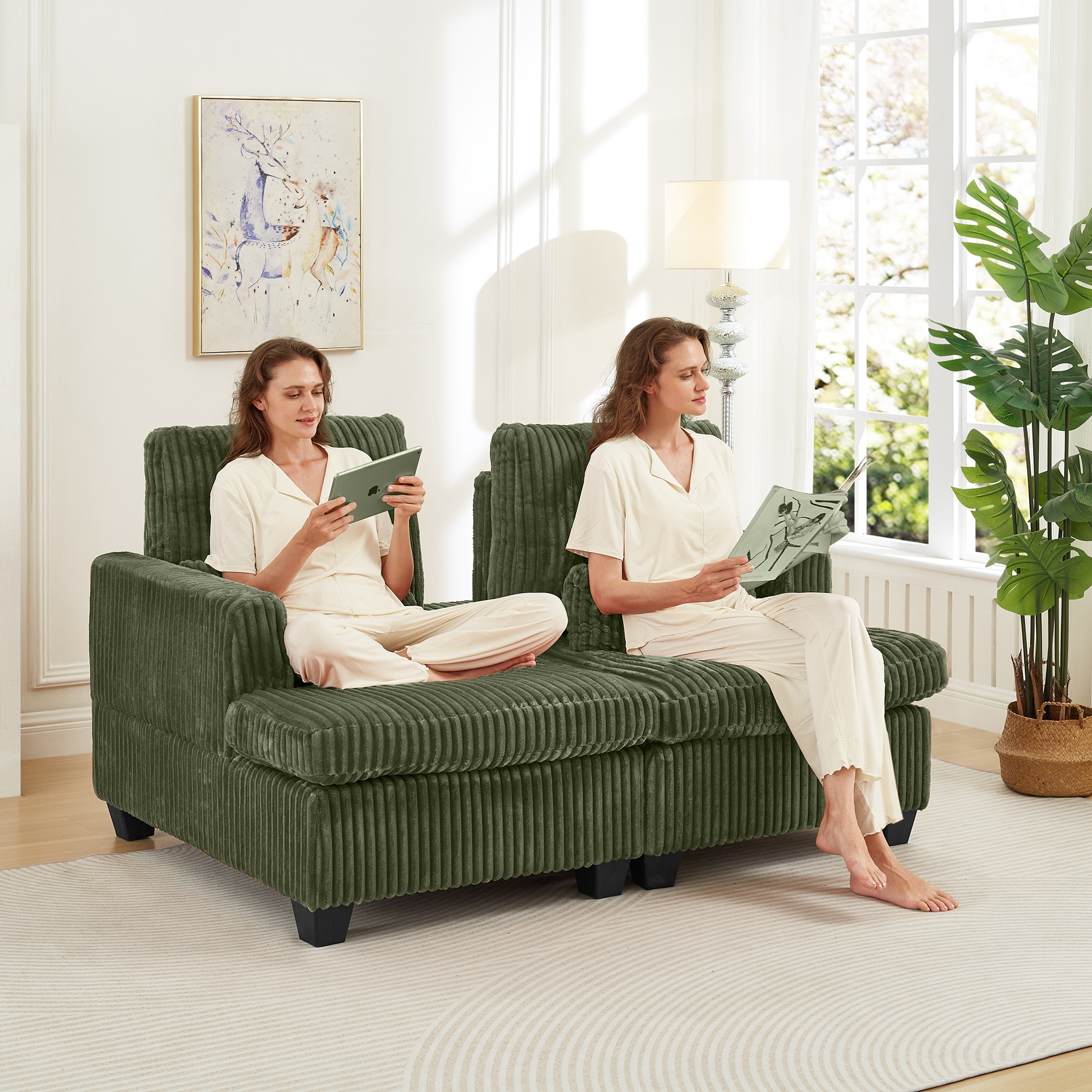 Modern Modular 2-Seater Sofa, Corduroy Sofa with Adjustable Backrest, Square Handrail, for Living Room, Bedroom, Green
