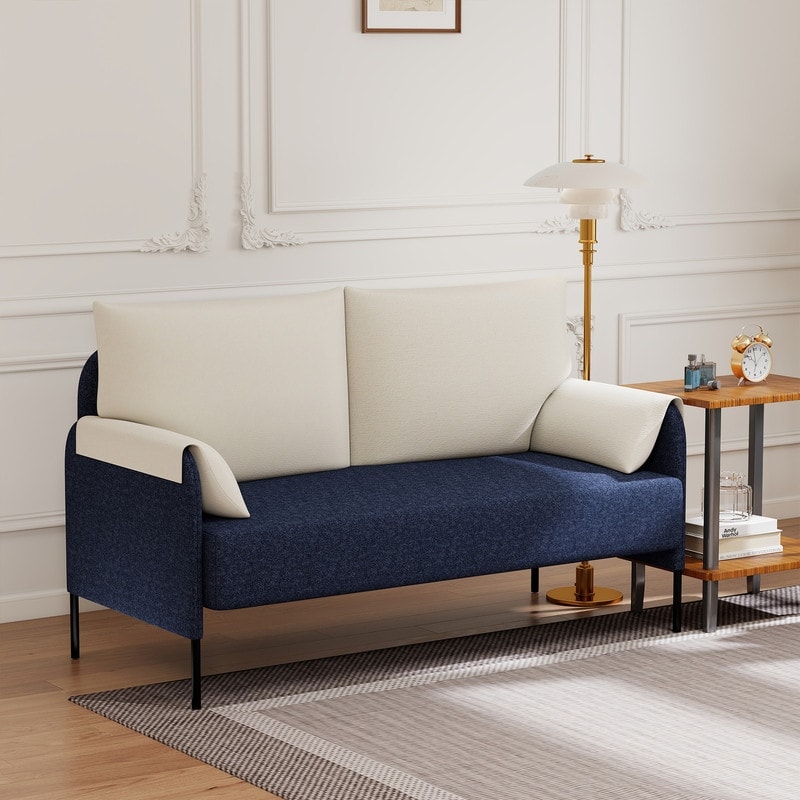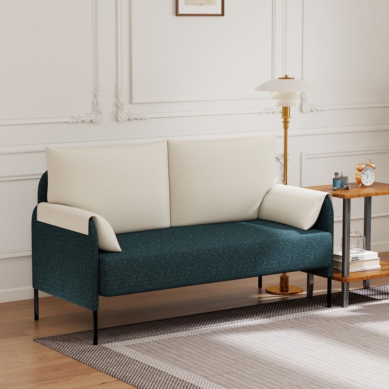 Modern Two-Tone Loveseat Sofa, Linen-Like Fabric with Soft Padded Back