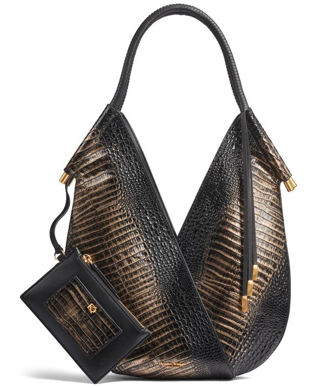 Baldwin Metallic Croco Medium Shoulder Bag - Black - Donna Karan Shoulder Bags