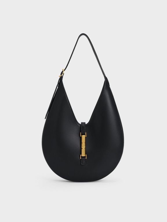 Cesia Metallic-Accent Hobo Bag - Black - Charles & Keith Hobo Bags