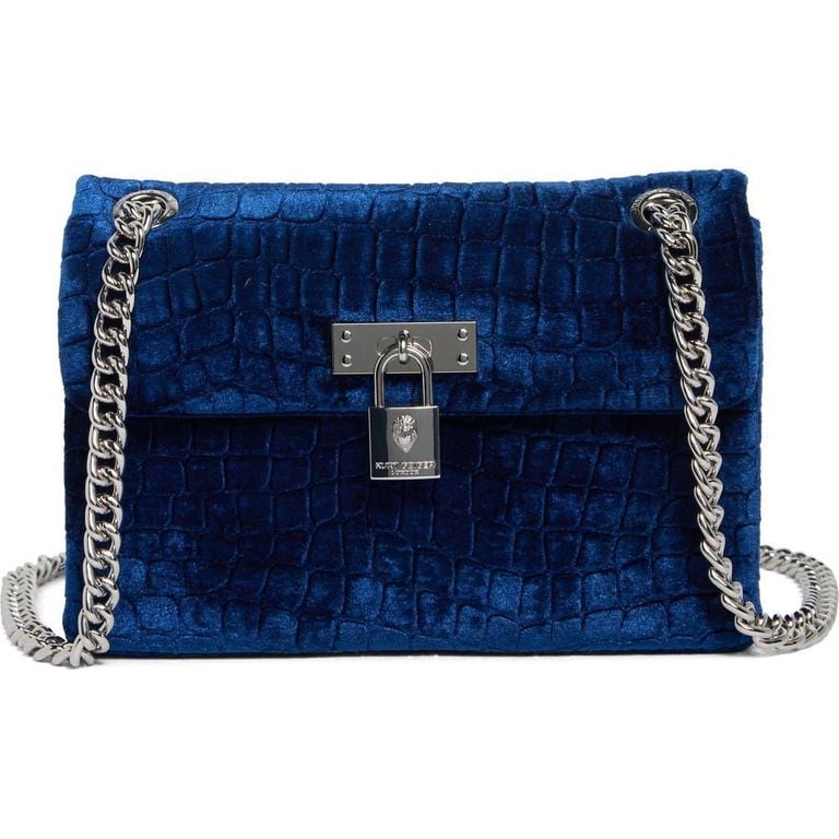 Mini Brixton Velvet Crossbody Bag - Blue - Kurt Geiger Shoulder Bags