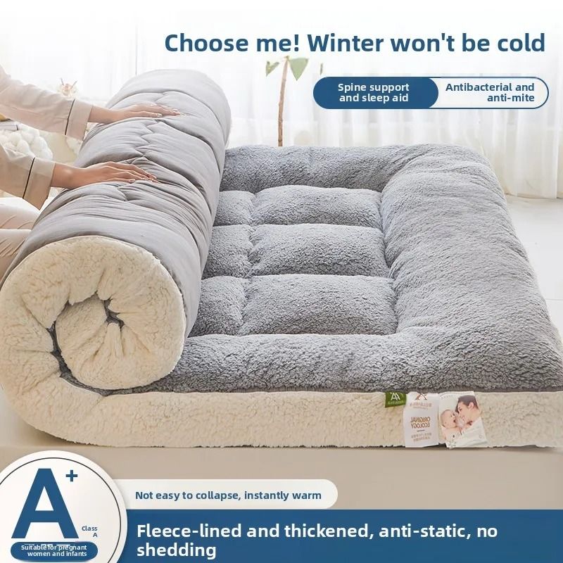 Thiened Lamb Velvet Mattress Pad Warm Soft Foldable Bedding For Home And Dorm 200 X 220 Cm Double Mattress peach Powder