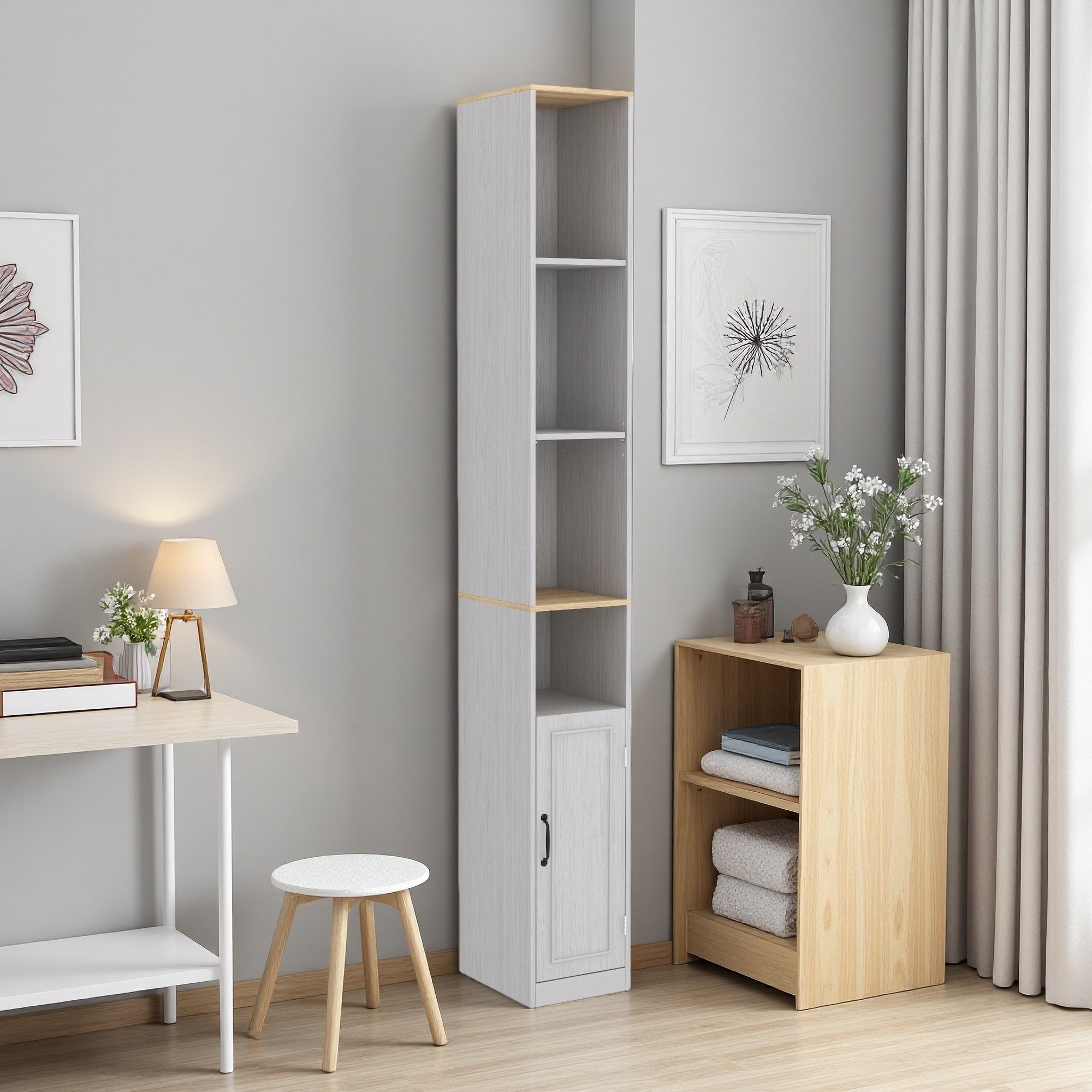 72"H 6-Tier Slim Storage Cabinet, Adjustable Freestanding Rack