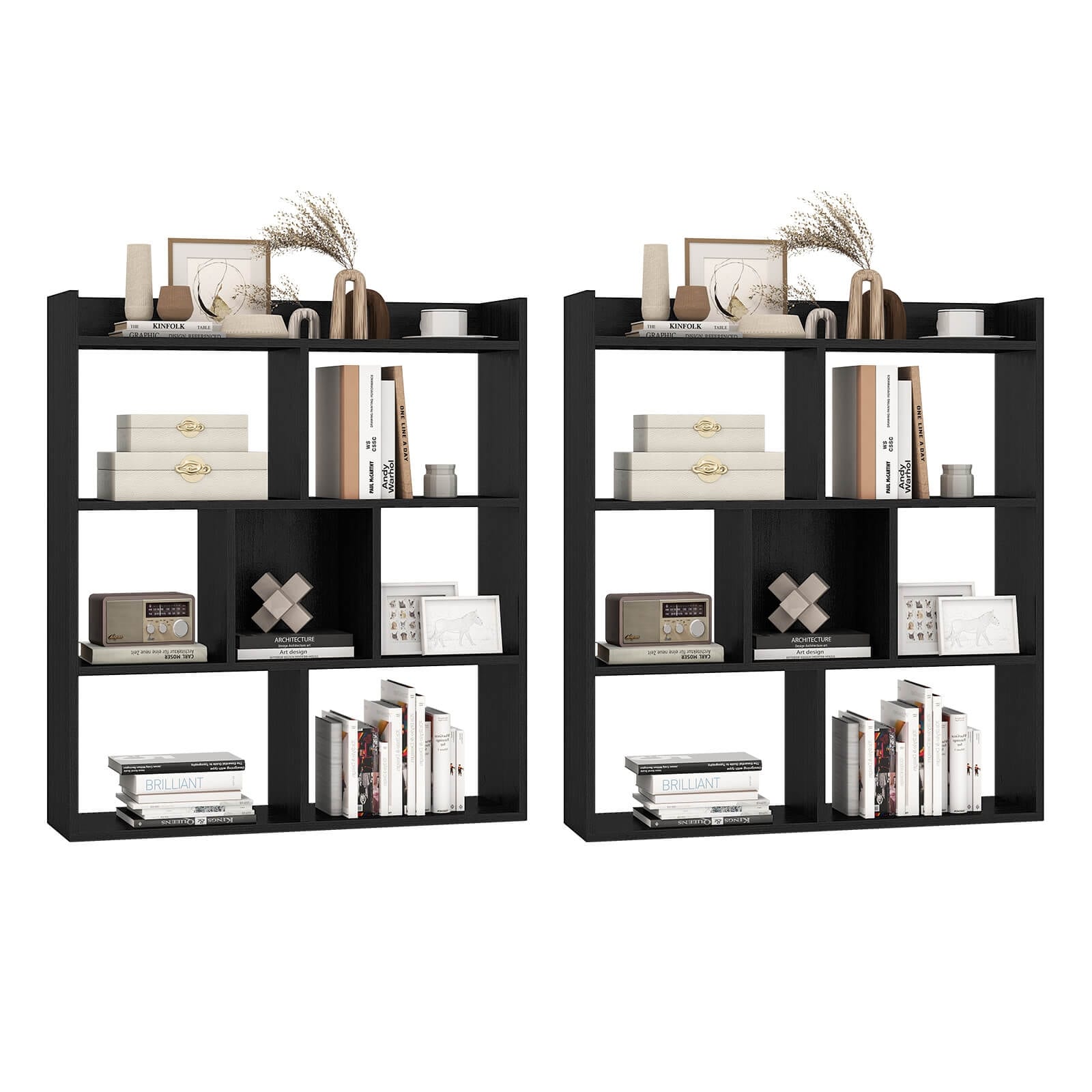 1/2 PCS 4 Tier Wooden Bookcase 7 Cubes Freestanding Bookshelf