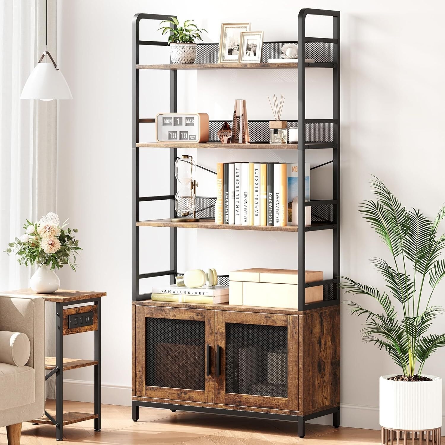 Bookshelf with Doors Industrial Bookcase with 4 Tiers Open Storage Shelf, 70.87" Tall Metal