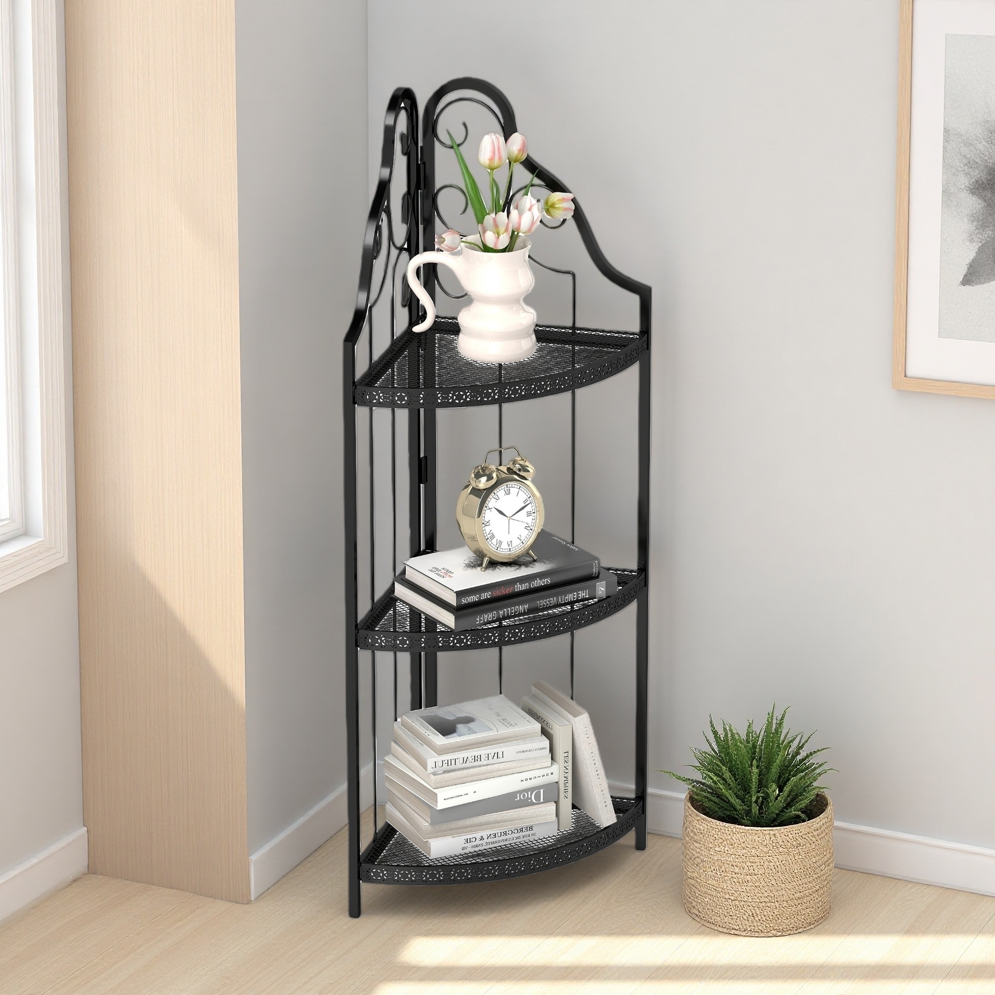 41"H 3-Tier Corner Open Shelf, Bookcase Freestanding Shelving Unit, Plant Stand Small Bookshelf with Sturdy Metal Construction