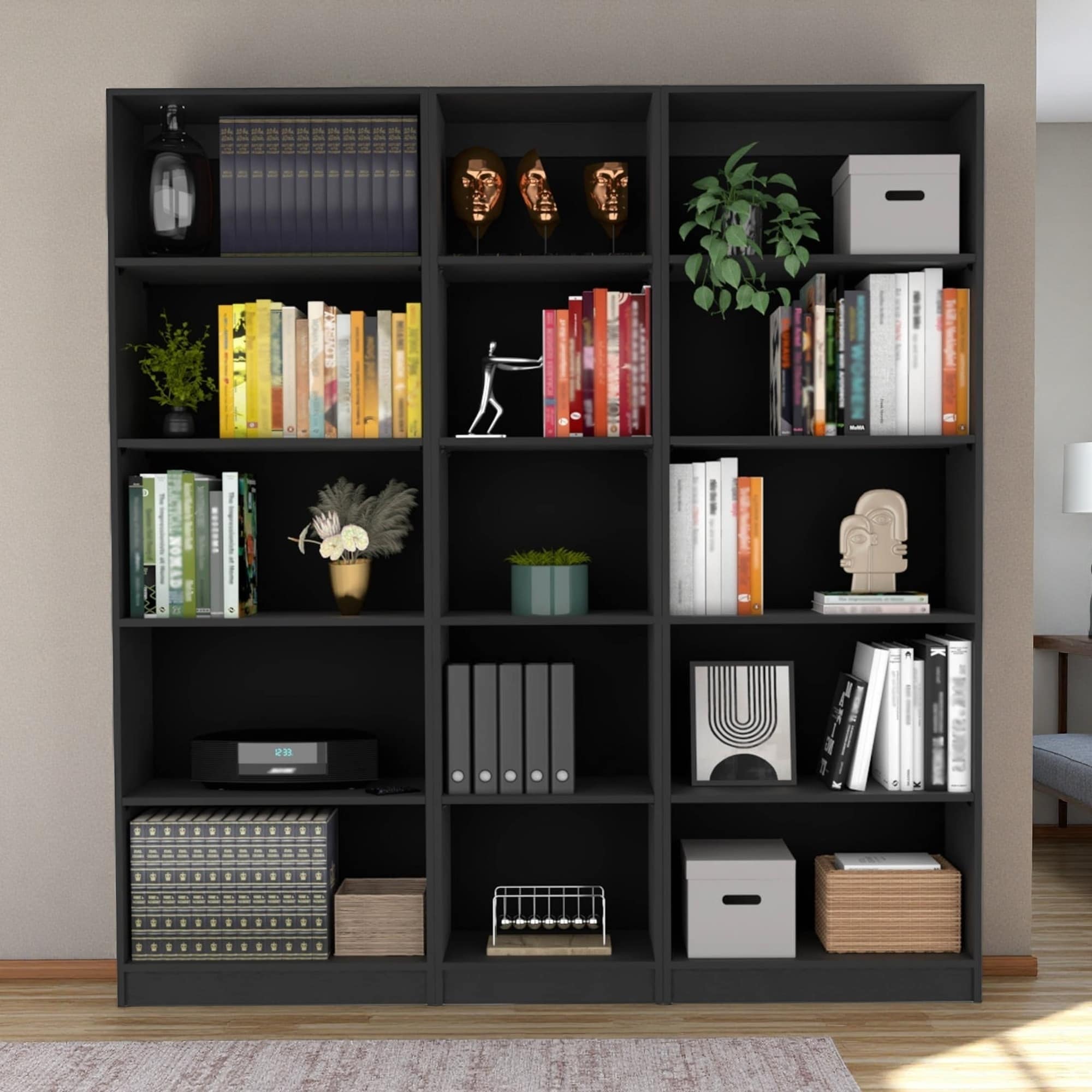 71.1"H Manufactured Wood 3-Piece Living Room Set with Two 4-Shelf Bookcases and Slim Bookcase for Versatile Storage & Display