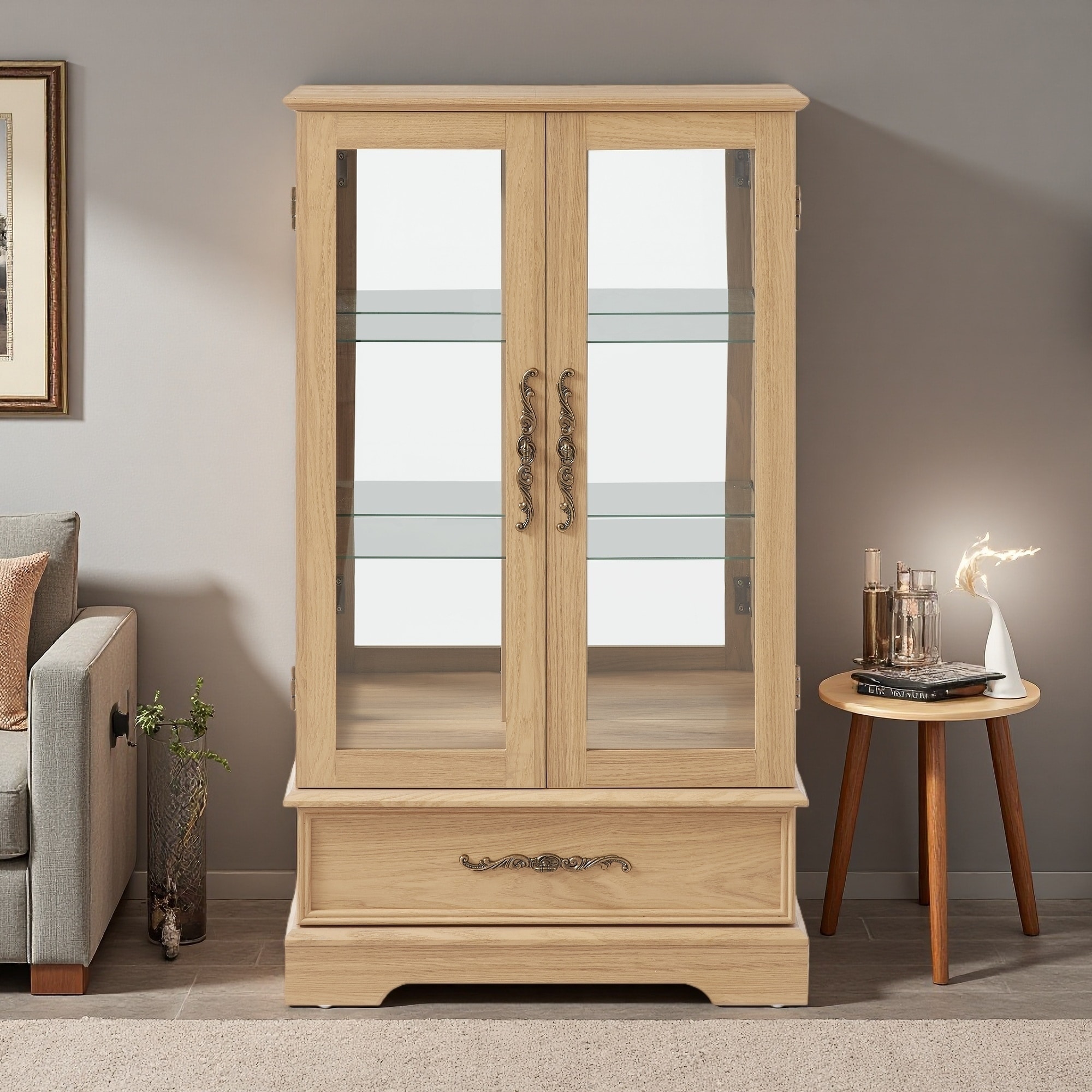 47.44"H Lighted Glass Curio Cabinet, 2 Doors, 1 Drawer, LED Light, Anti-Tip