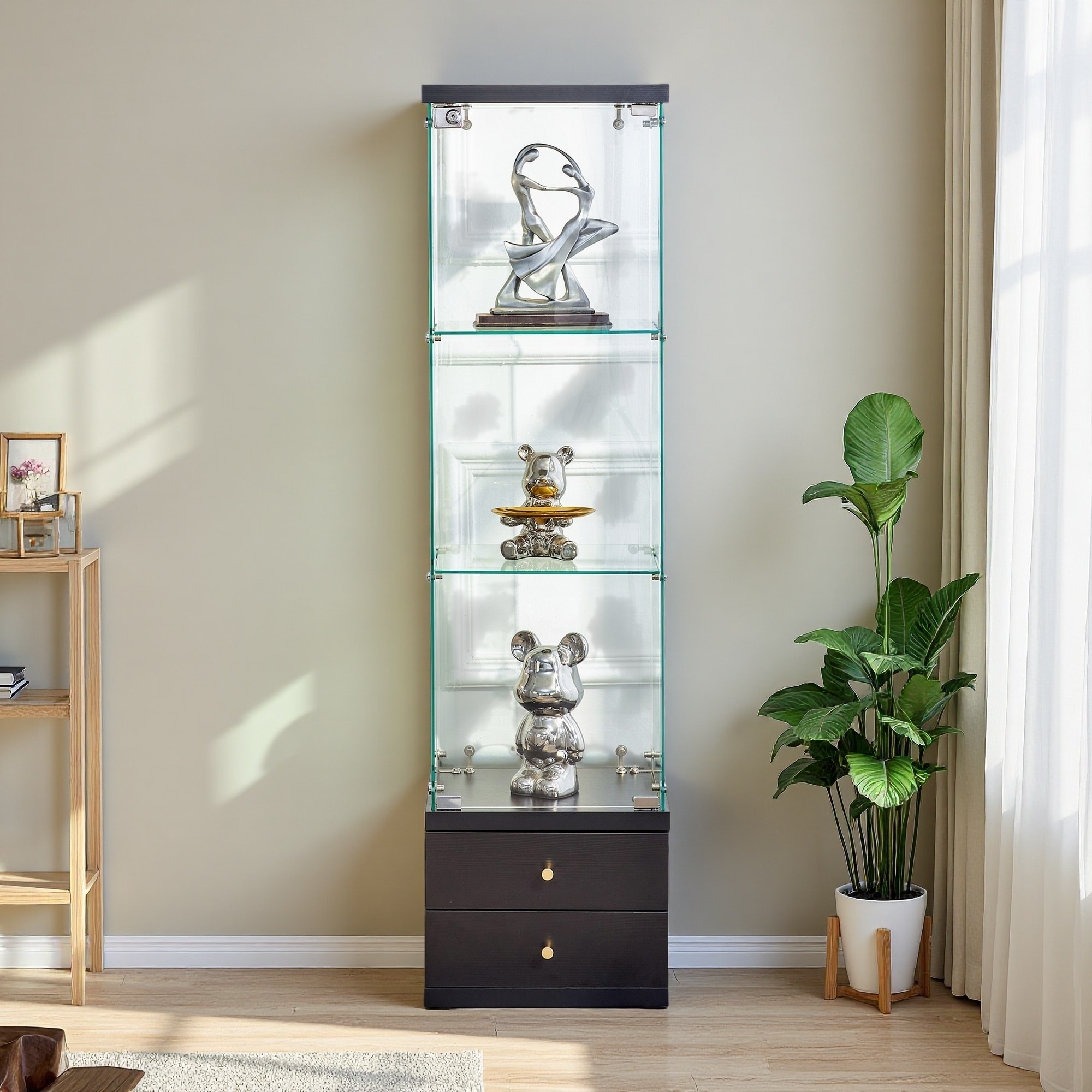 59"H Non-Lit Glass Display Cabinet, 0.2" Tempered Glass, Soft-Close Drawer Slides, 3 Adjustable Shelves, for Display & Storage