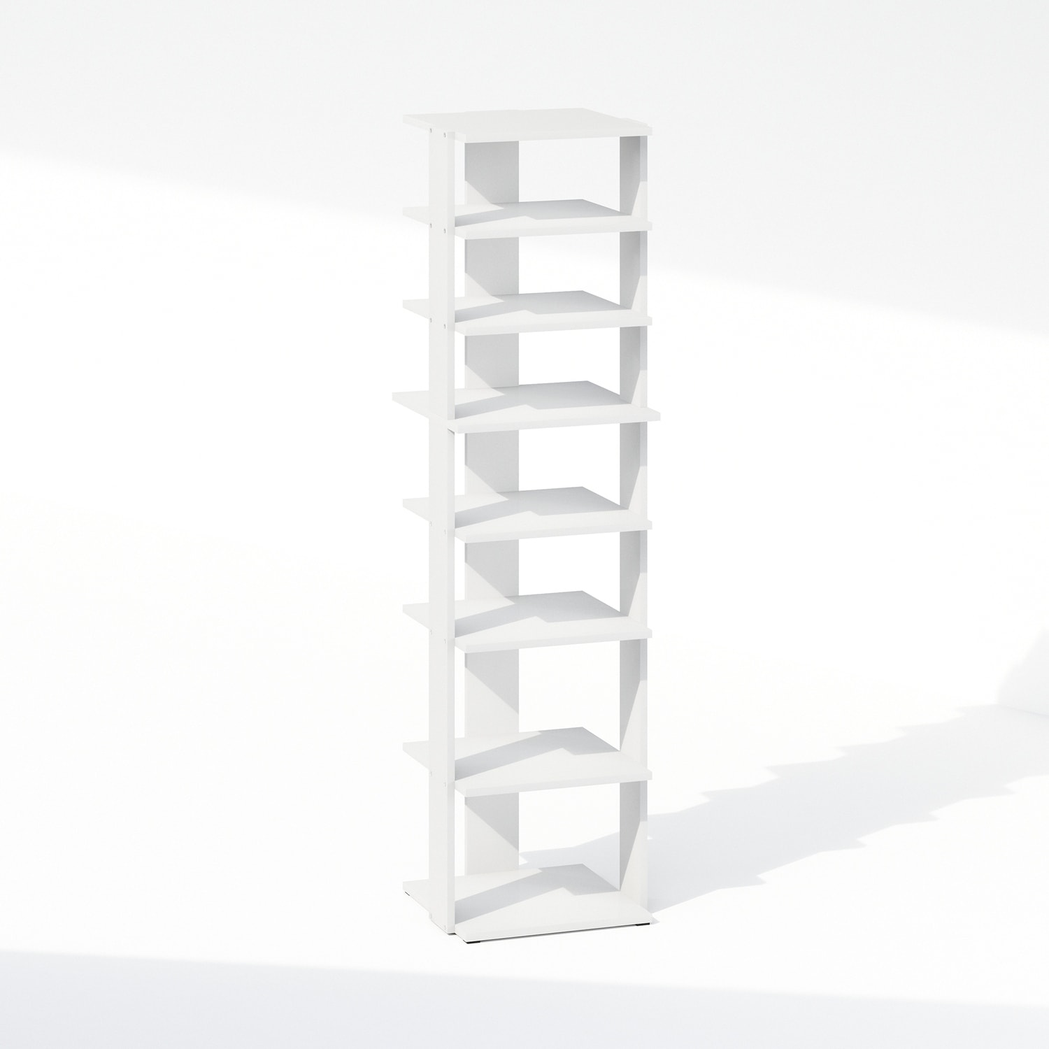 8 Tiers Wood Household Shelving Unit in White (12.64 in. W x 46.77 in. H x 12.13 in. D) - 12.64