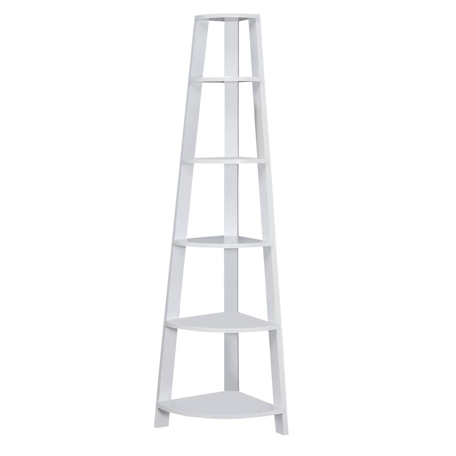 Roomfitters Set of 2 Triangle Bookshelves, 75.25'' Tall 5-Tier Display Bookcase for Hallways, Office and Living Room, White