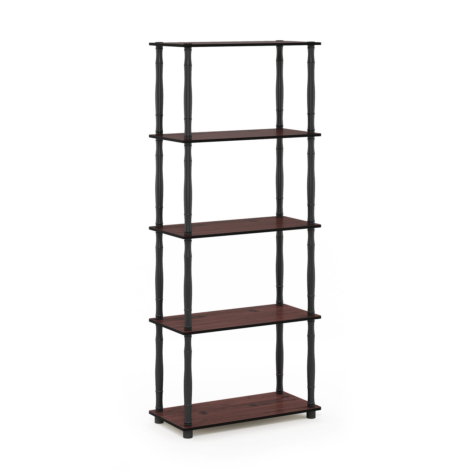 5 Tiers Wood Household Shelving Unit in Dark Cherry/Black (23.6 in. W x 57.4 in. H x 11.6 in. D) - 23.6