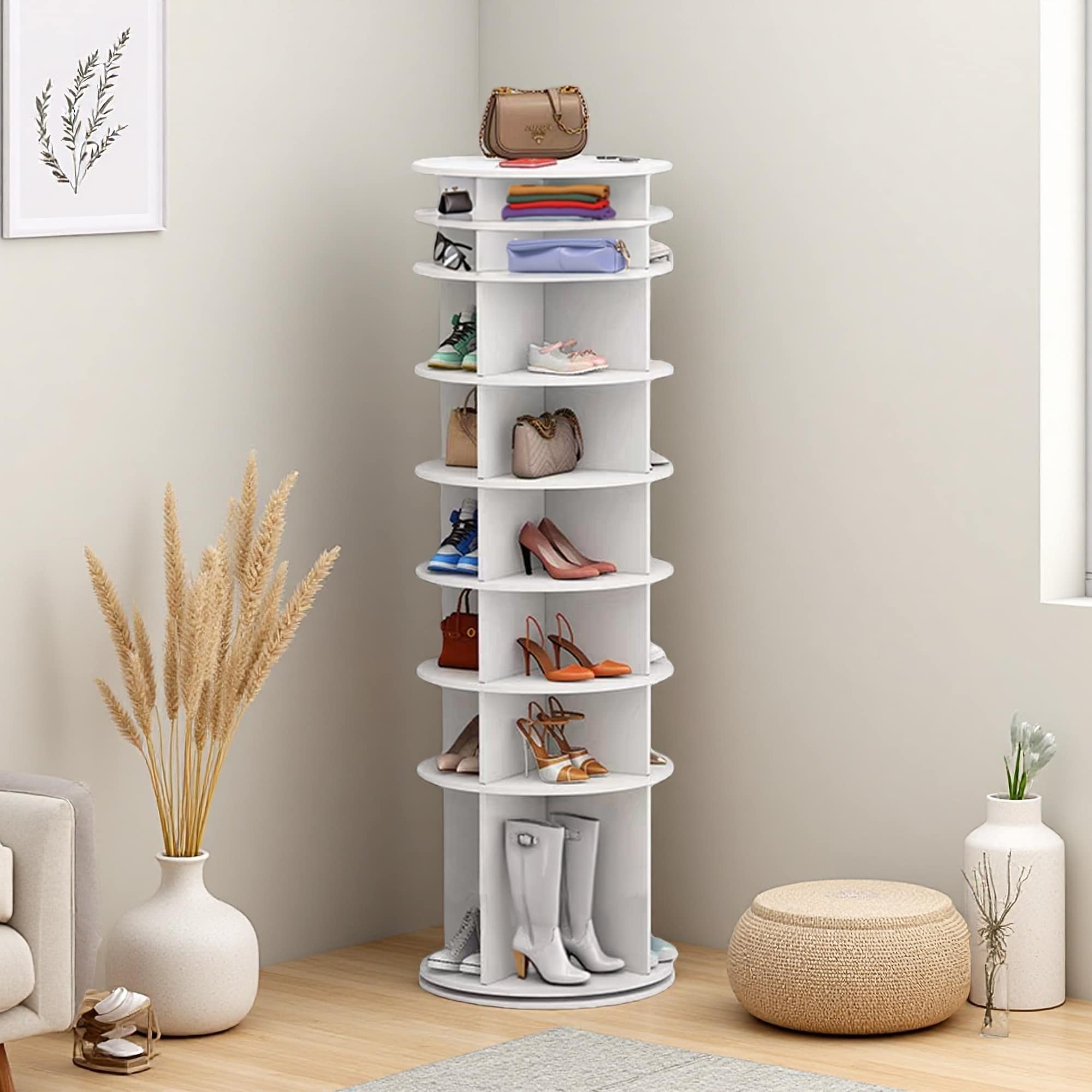 72"H 8-Tier Rotating Shoe Rack, 360° Spinning Shoe Organizer, Vertical Carousel