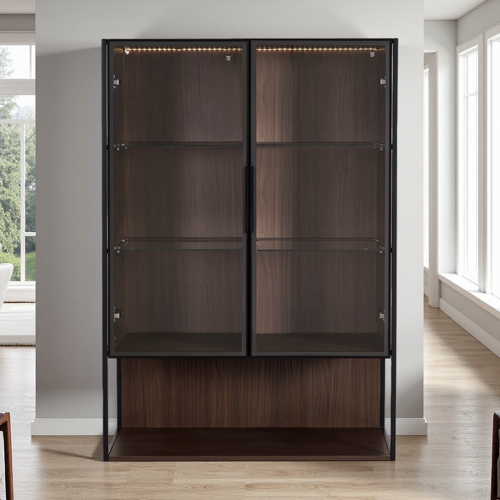 51.25"H Freestanding Lighted Display Cabinet, Glass Doors, 4-Tier Adjustable Shelves