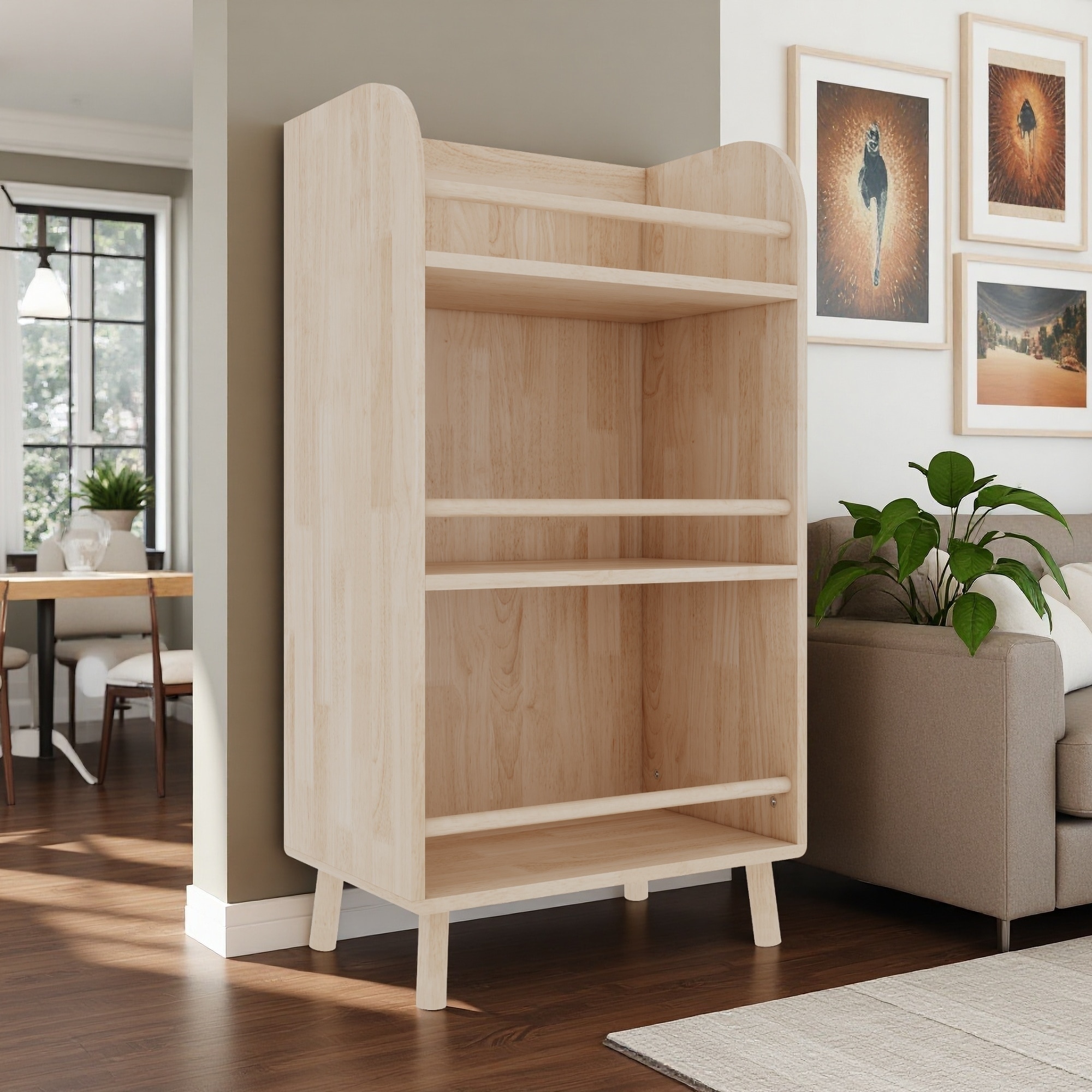Modern Wooden Storage Bookcase with Shelf, Playroom Living and Office