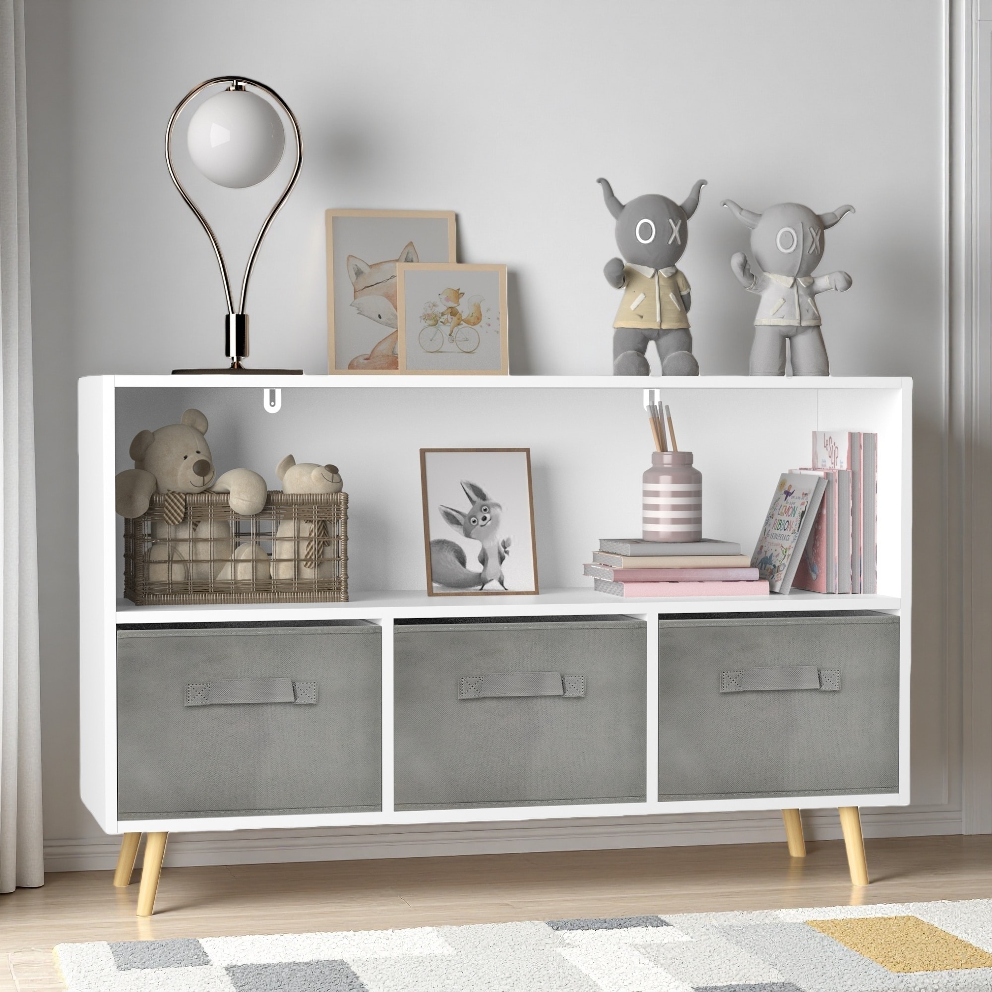 23.62"H Kids Bookcase with Collapsible Fabric Drawers, MDF Shelf, Toy Storage Organizer with Safety Buckle for Children's Room