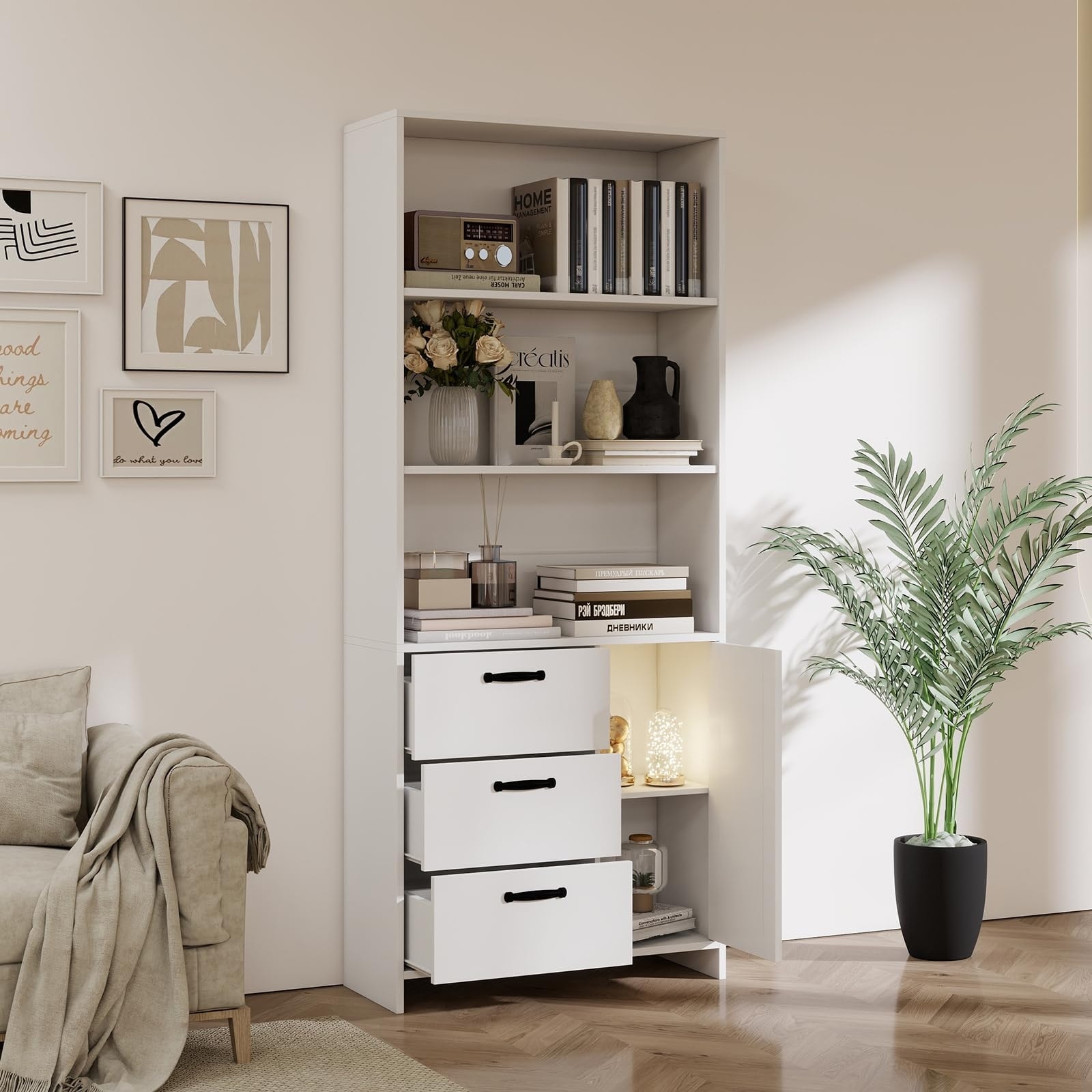 6-Tier Bookshelf with Doors & 3 Drawers, 71" Tall Wood Bookcase with Open Shelves for Home Office