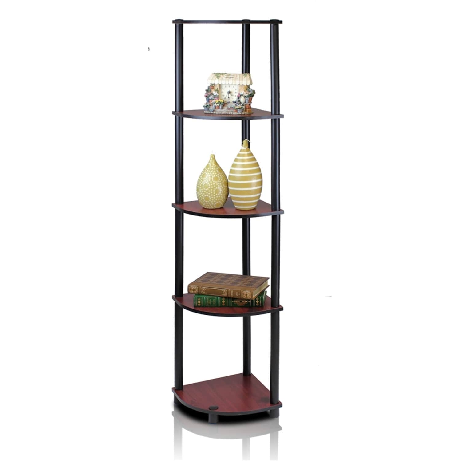 5 Tiers Wood Household Shelving Unit in Dark Cherry/Black (11.6 in. W x 57.7 in. H x 11.6 in. D)