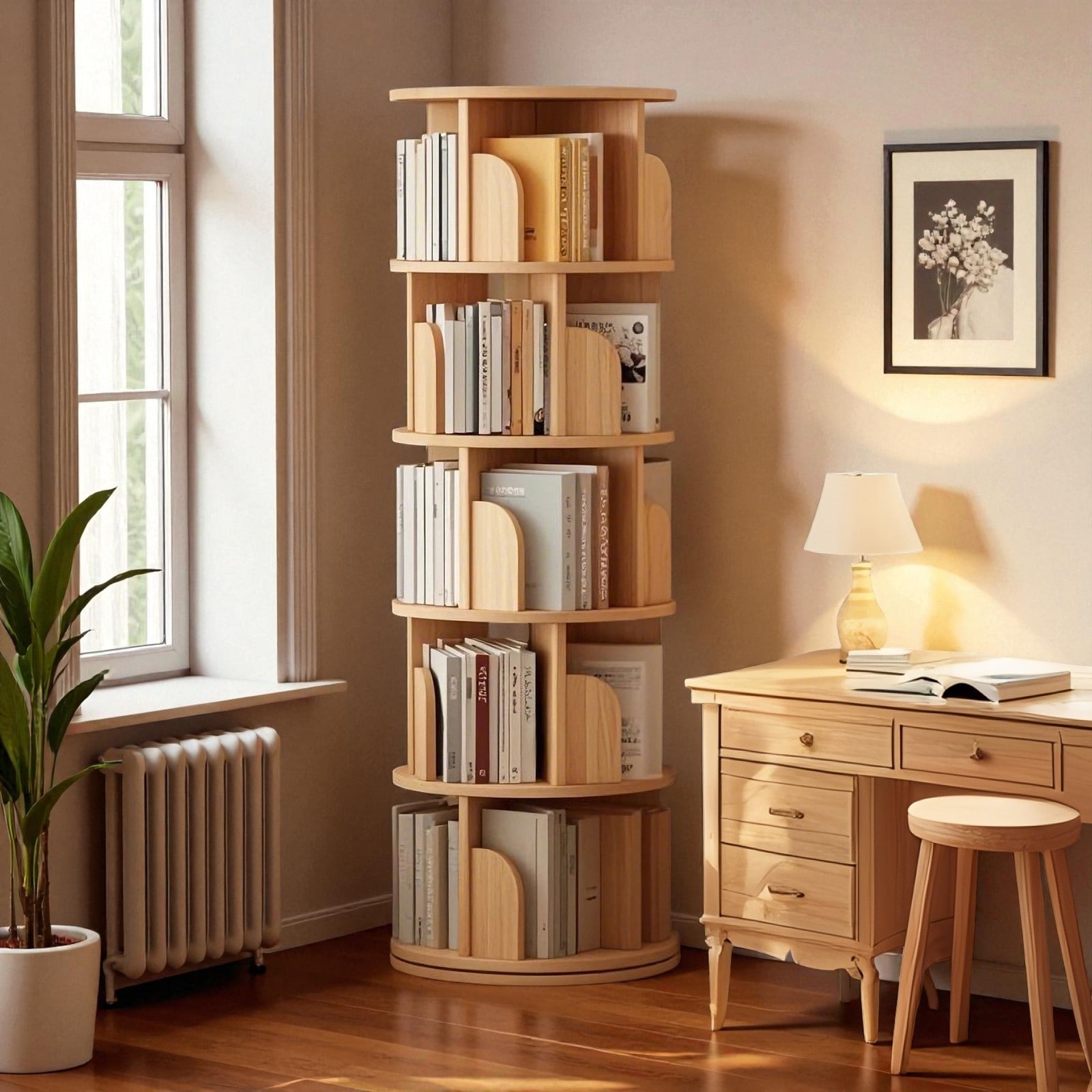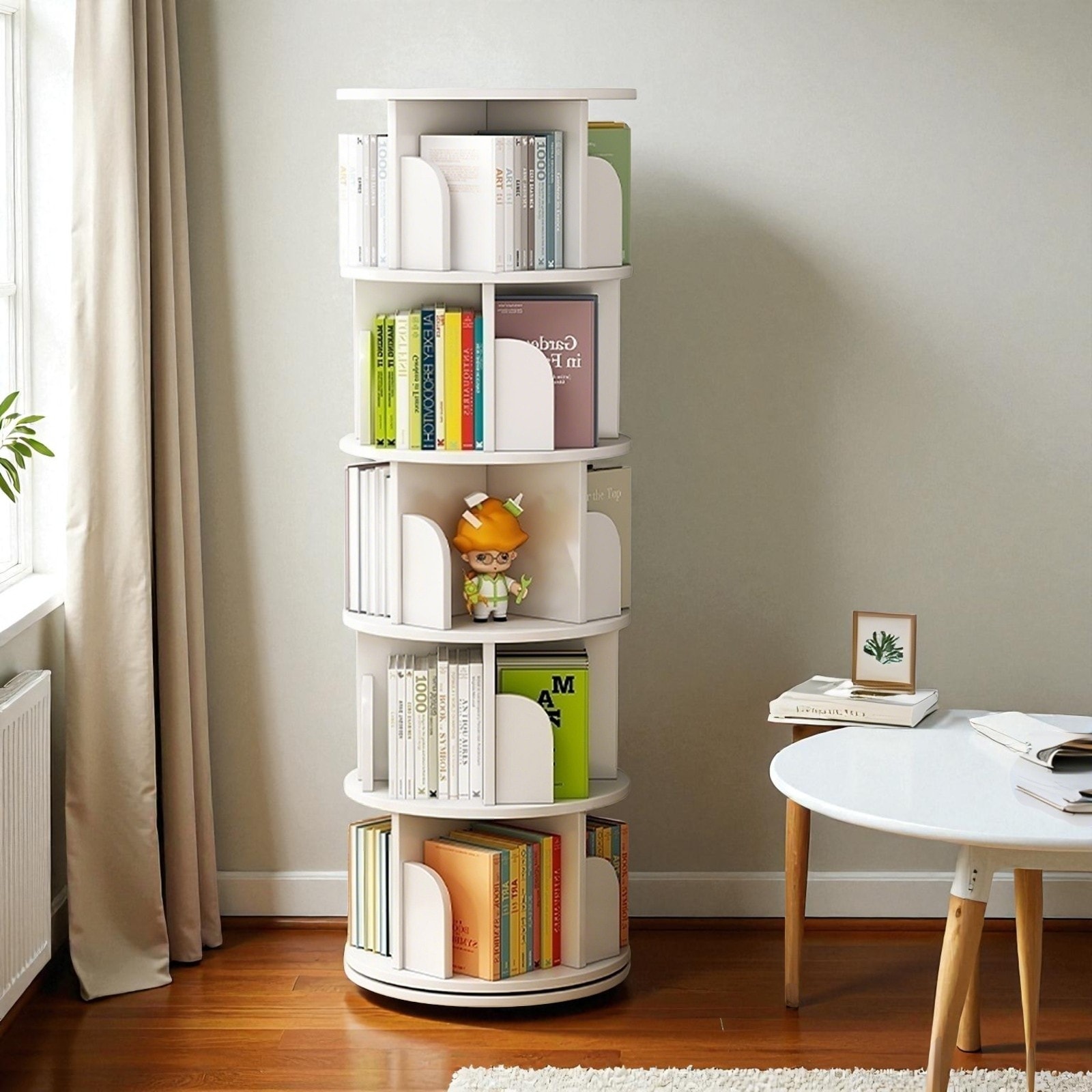 5-Tier 360° Rotating Bookshelf, Round Spinning Bookcase Tower with Space-Saving Design for Bedroom, Living Room, and Office