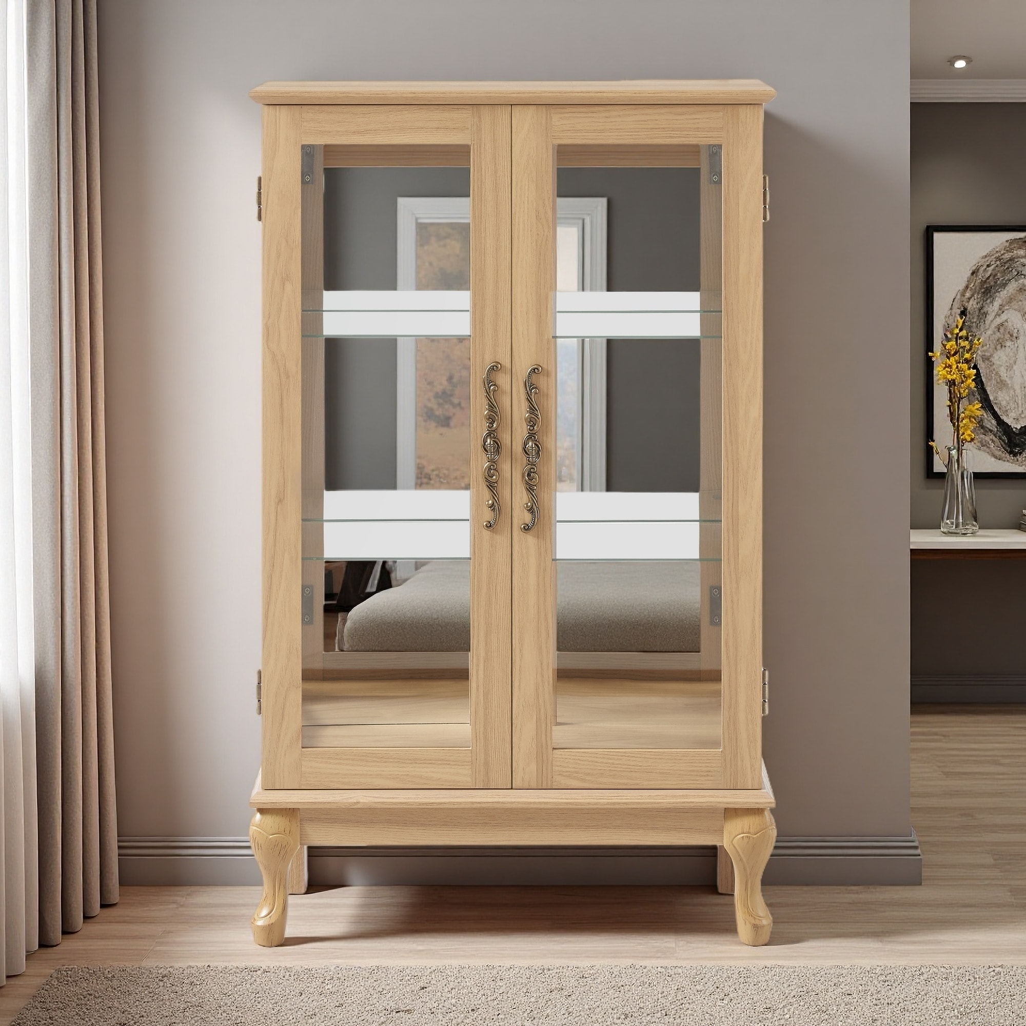 NADAAL STUDIOS Virelle Tall Cabinet, Glass Front with Molding Detail and Solid Oak Frame, Natural