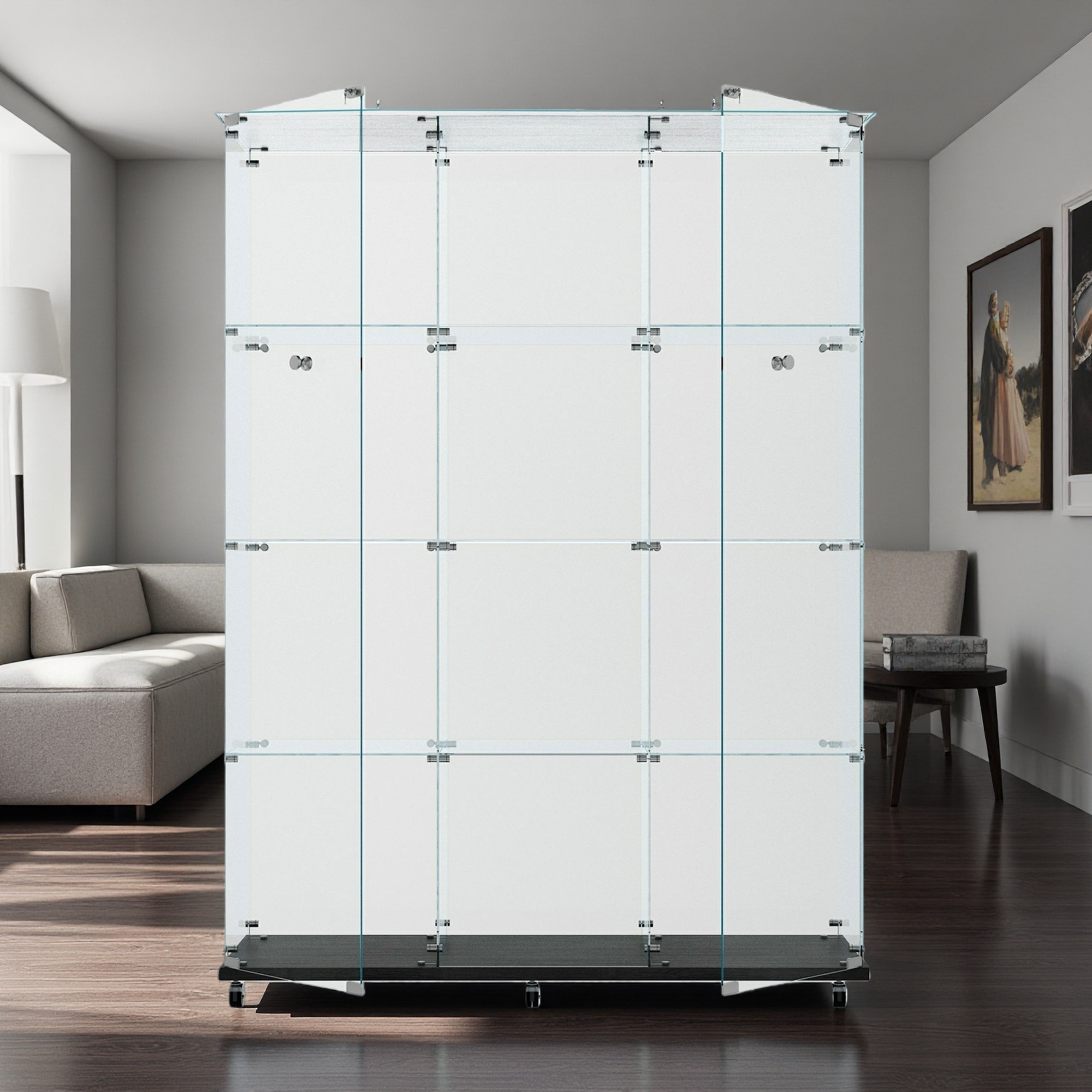 64.88"H Tempered Glass Display Cabinet, Wine Storage, Bluetooth LED, Lockable Door, Mobile