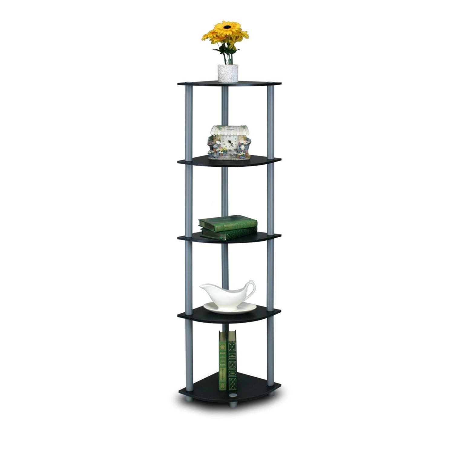 5 Tiers Wood Household Shelving Unit in Black/Grey (11.6 in. W x 57.7 in. H x 11.6 in. D)