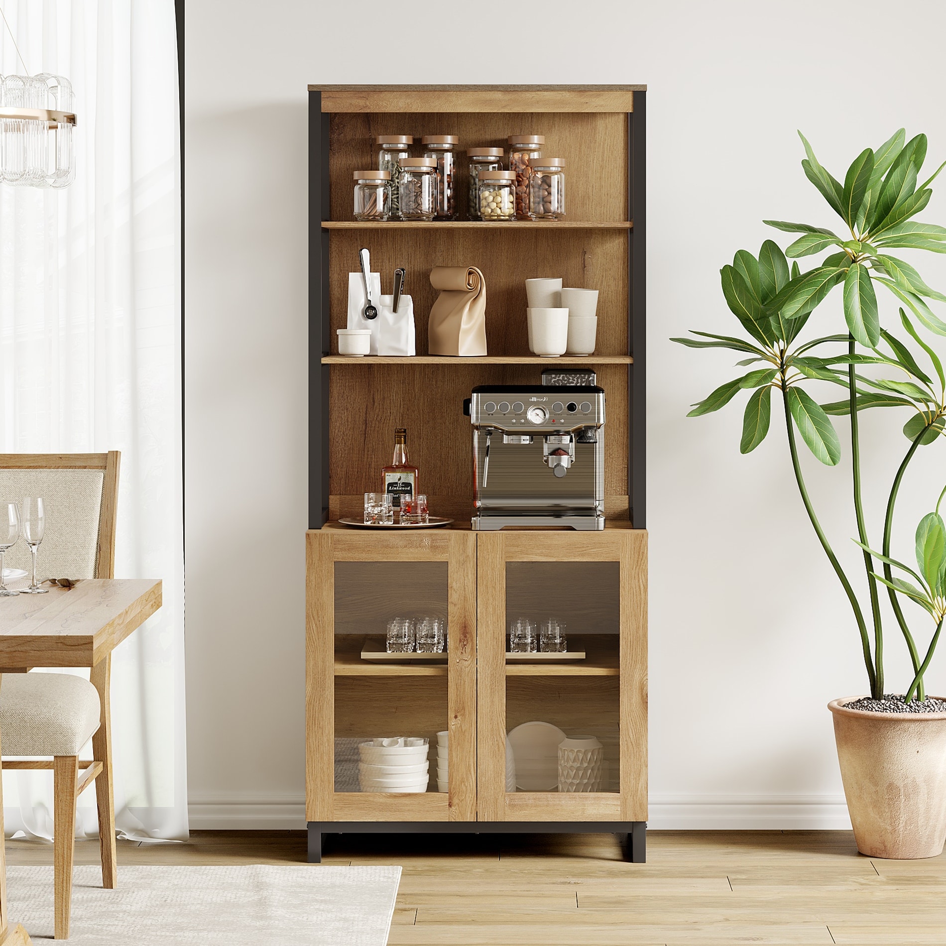 Modern 72" Tall Bookcase with Glass Doors and Adjustable Shelves for Home Office, Living room.