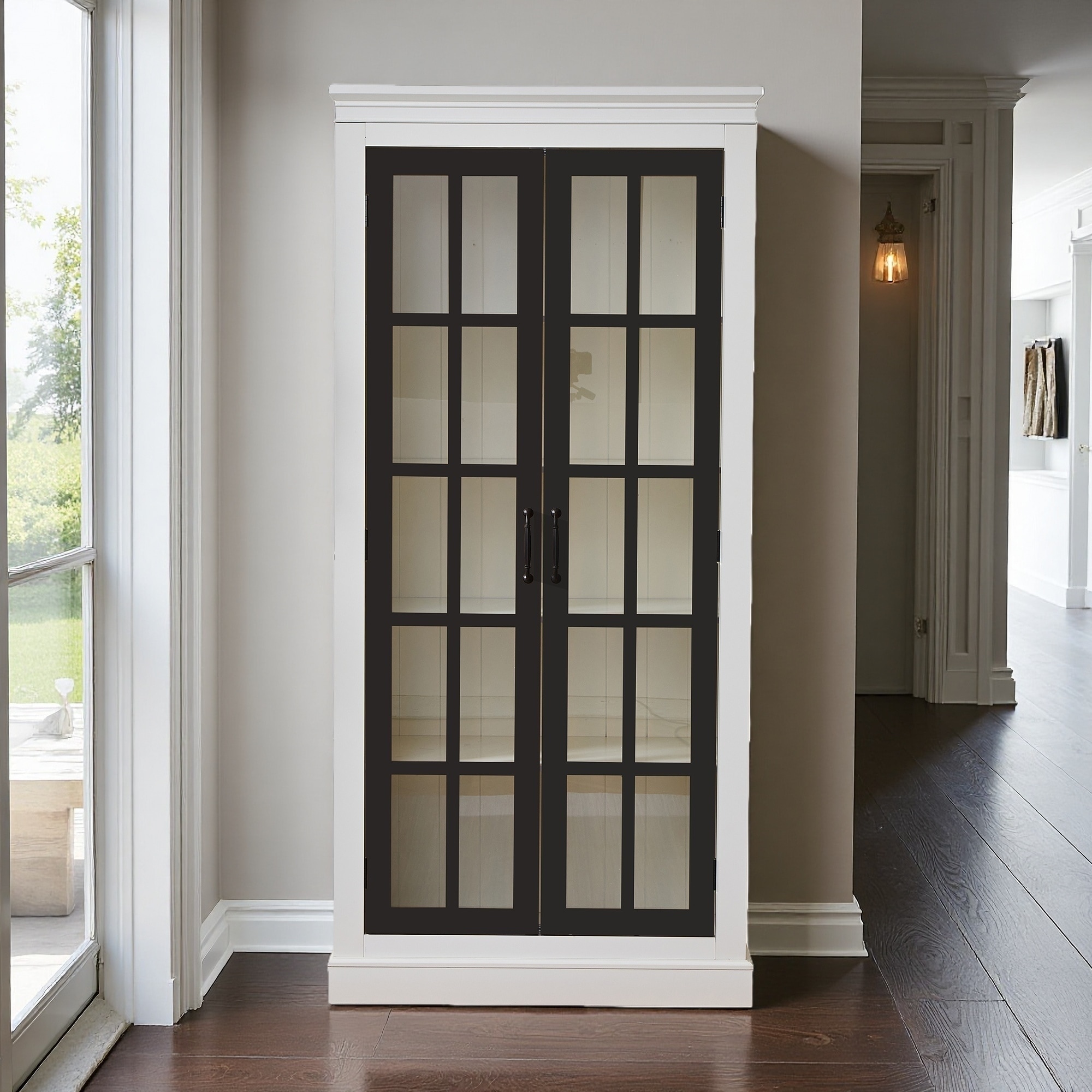 71.2''H Freestanding Pantry Cabinet with Glass Doors Display Cabinet with Adjustable Shelves, Curio Cabinet with Lattice Windows