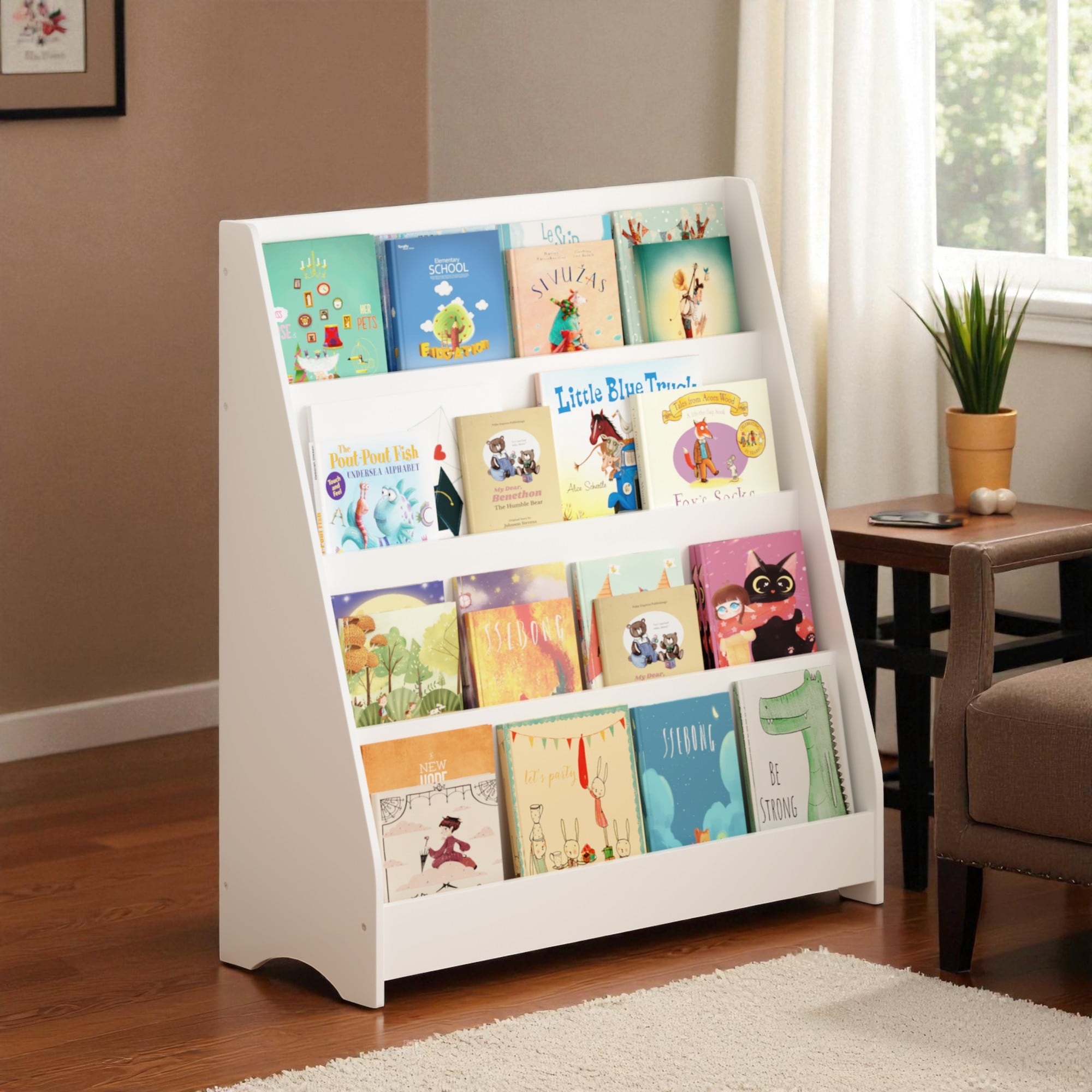 4-Tier Kids Bookshelf, Wooden Toddler Book Display and Toy Storage Organizer for Bedroom, Playroom, or Classroom