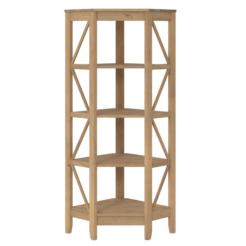 Modern Wood Corner Shelf, 5-Tier Bookshelf Bookcase for Living Room
