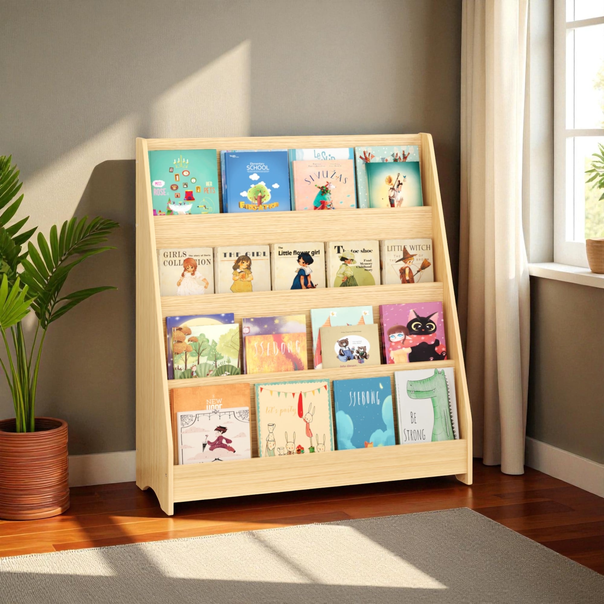4-Tier Kids Bookshelf, Wooden Toddler Book Display and Toy Storage Organizer for Bedroom, Playroom, or Classroom