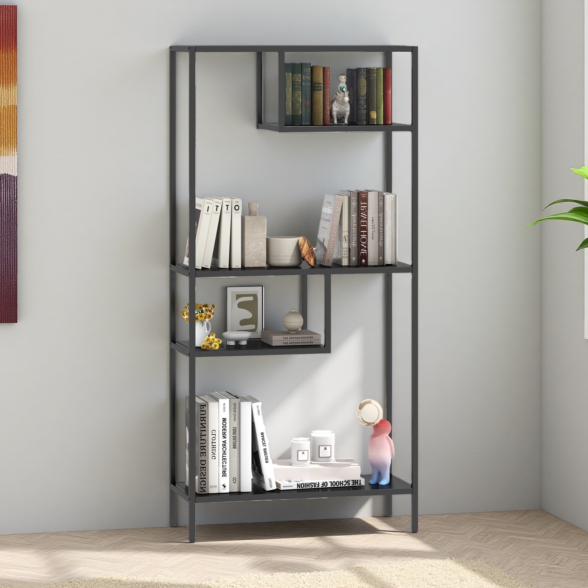 70.87"H Storage Shelf with 4 Compartments & Metal Legs, Freestanding Organizer, Book Shelves Display Shelves for Living Room
