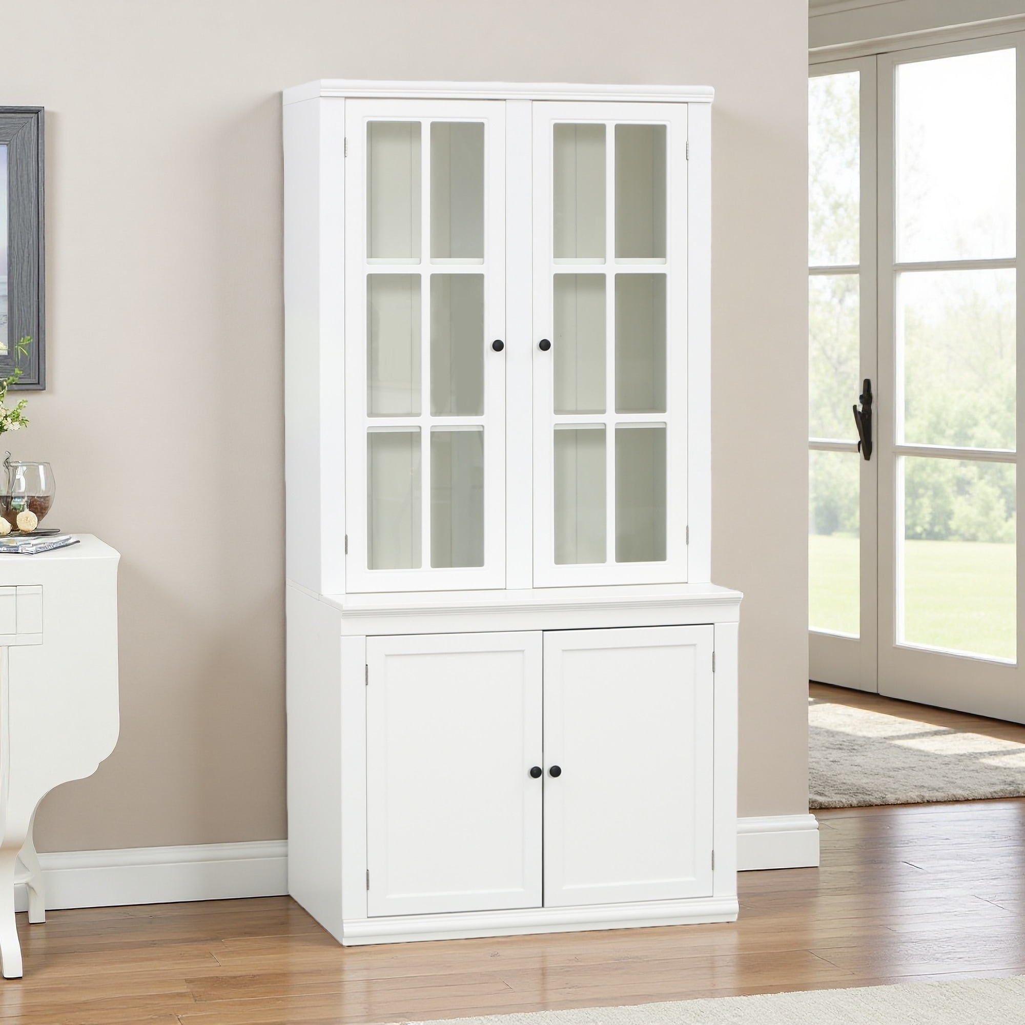75.25"H Freestanding Pantry Cabinet with Glass Door, Display Cabinet with Lattice Window, Storage Hutch for Hallways Living Room