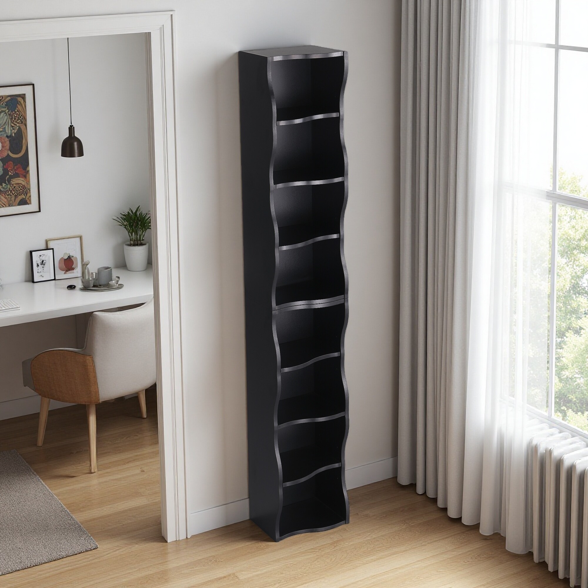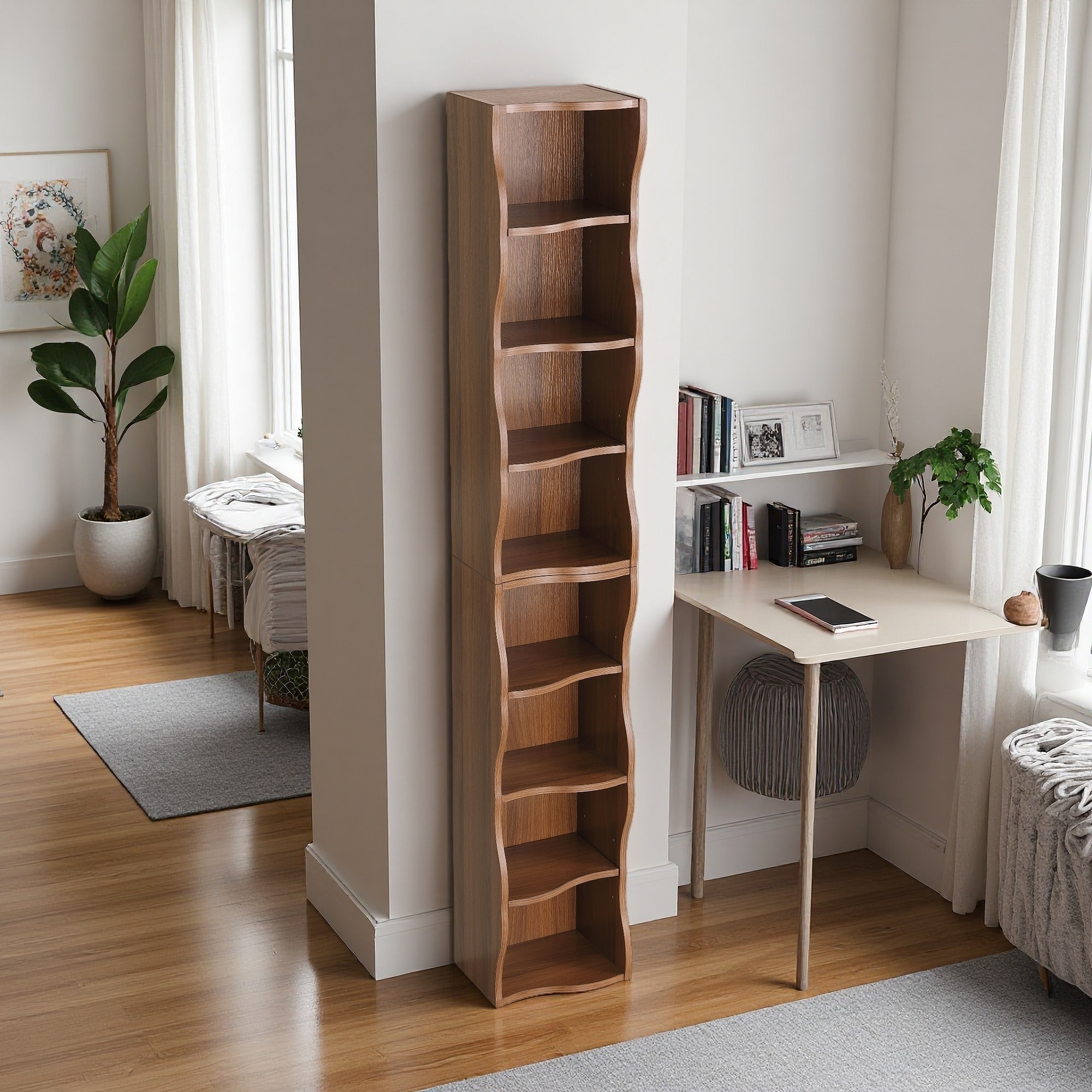 70.87"H 8-Layer Adjustable Shelf, MDF, Ultra-Thin Bookshelf, Wavy Edge, Anti-Fall