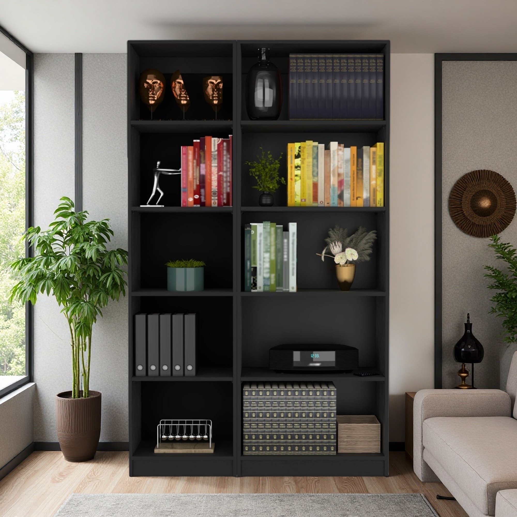 71.1"H 2-Piece Bookcase Set, Slim, 4-Shelf, Flexible Storage & Display