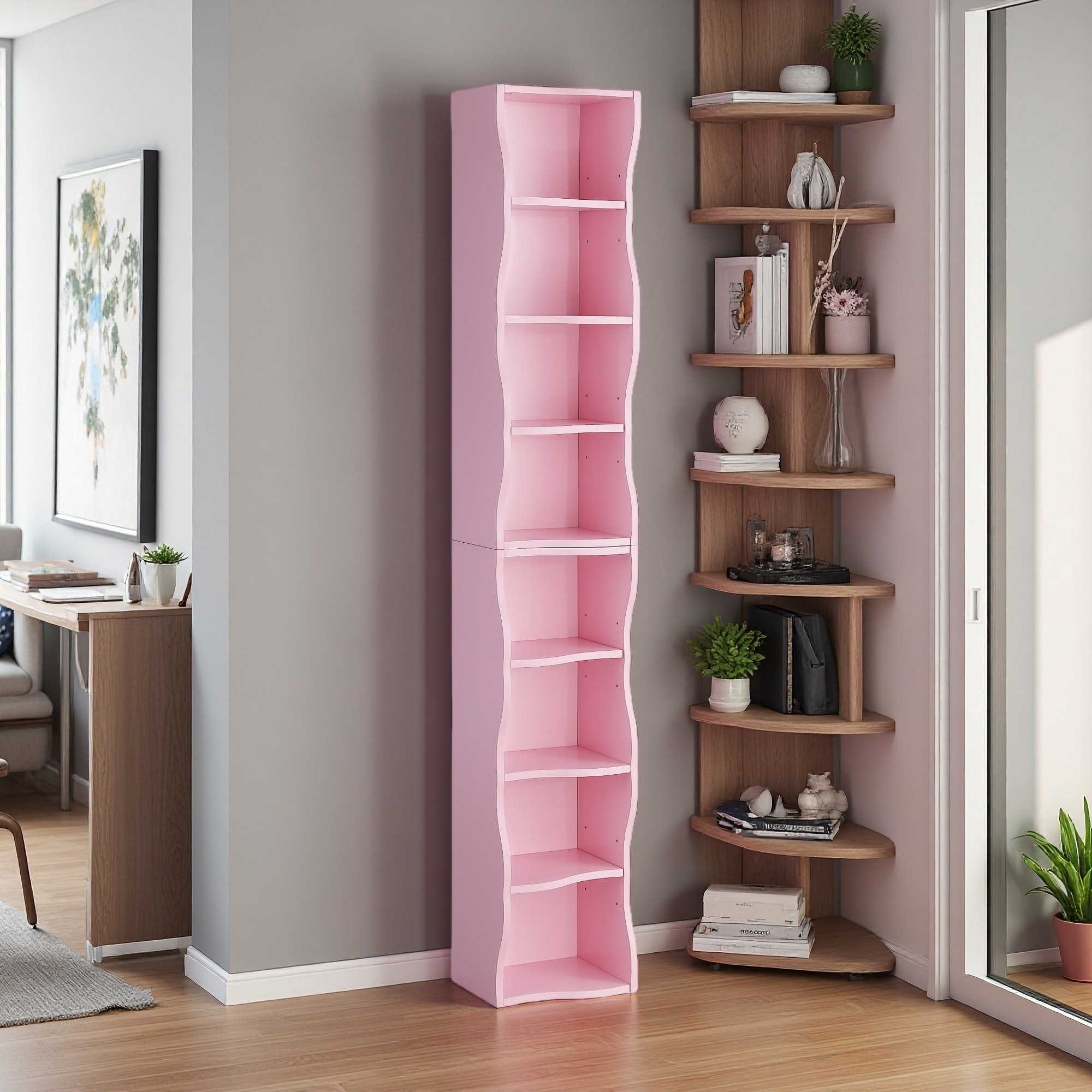 70.87"H 8-Layer Adjustable Shelf, MDF, Ultra-Thin Bookshelf, Wavy Edge, Anti-Fall