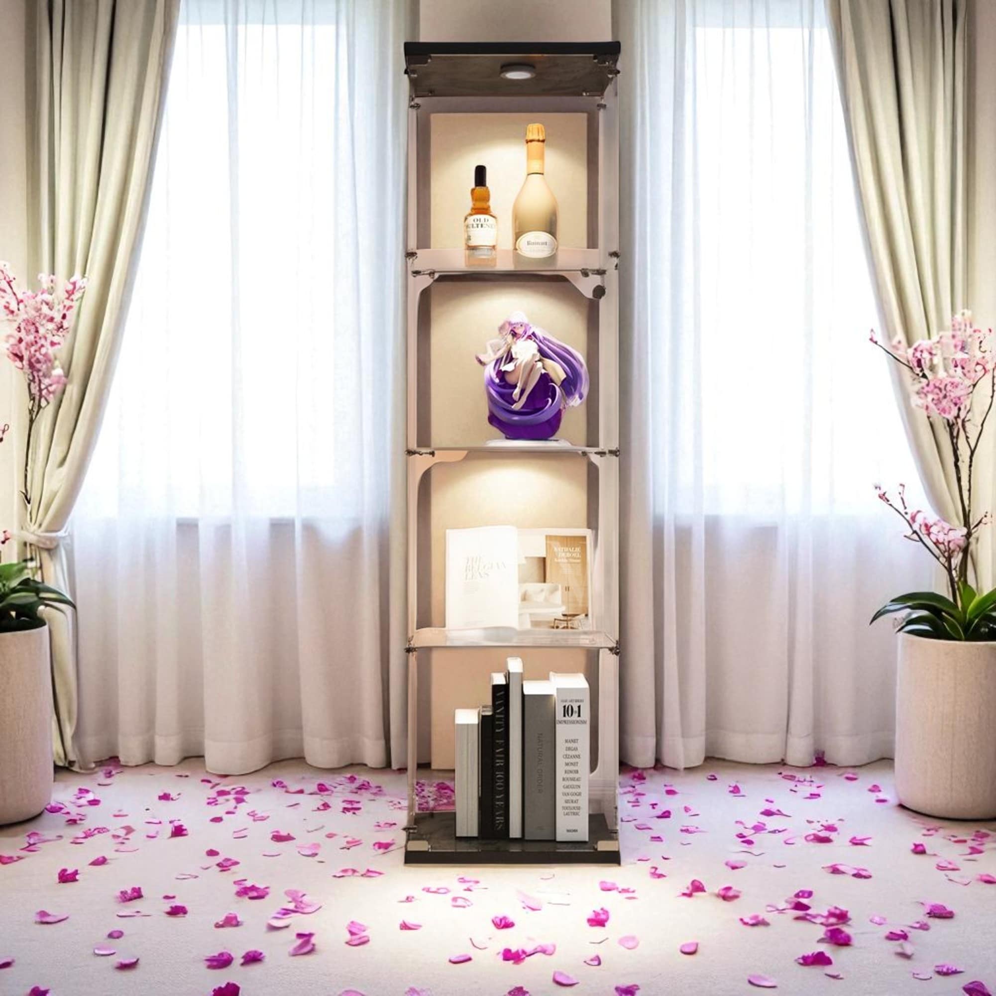 Glass Display Cabinet with 4 Shelves and Door, Floor Standing Curio Bookshelf for Office or Bedroom