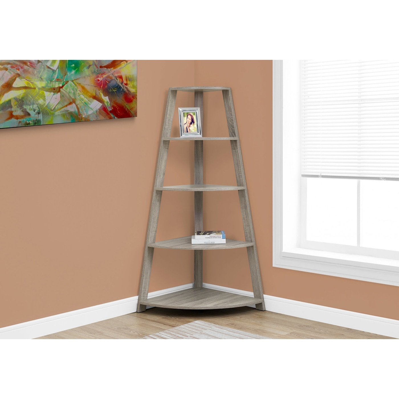 Bookshelf, Bookcase, Etagere, Corner, 4 Tier, 60"H, Office, Bedroom, Contemporary, Modern