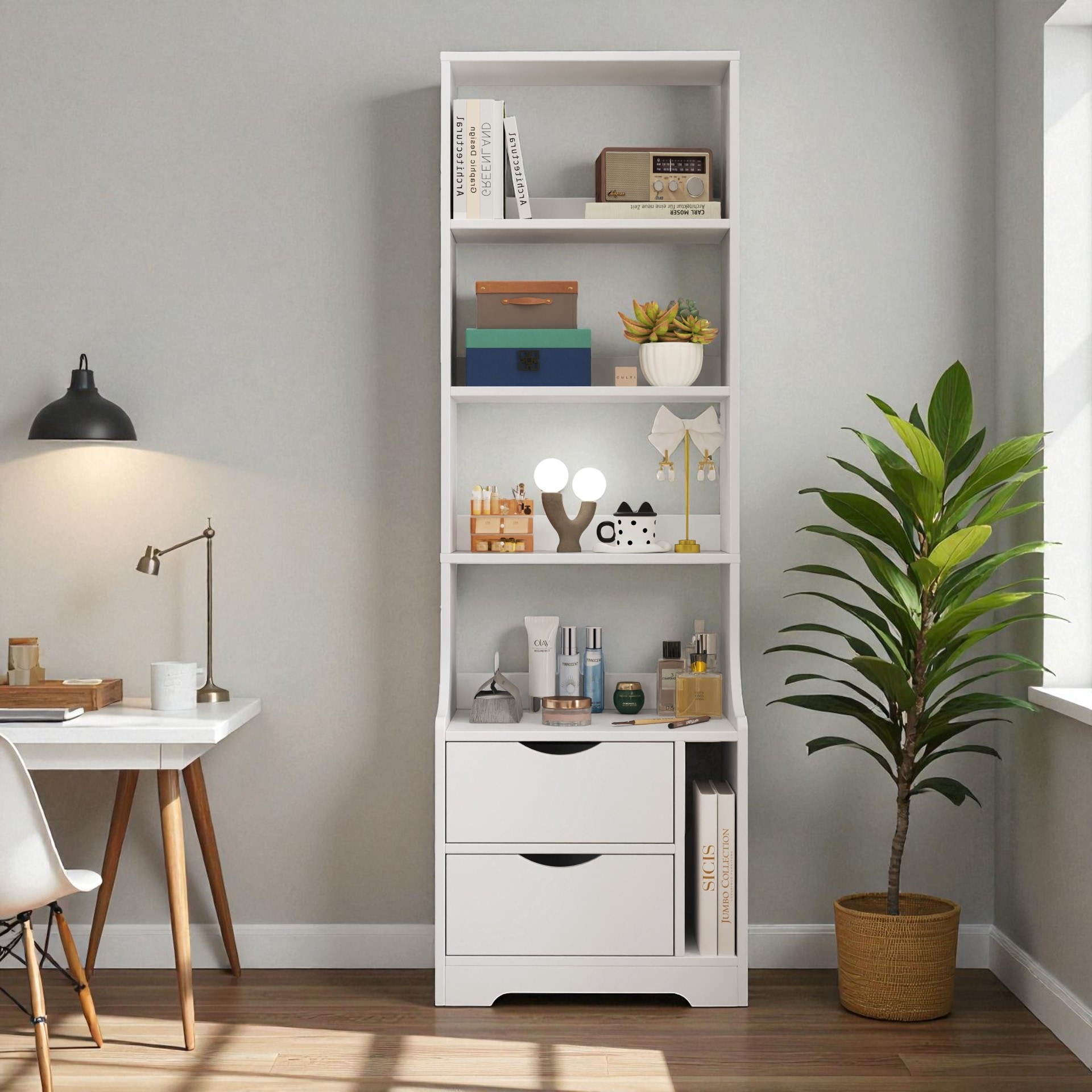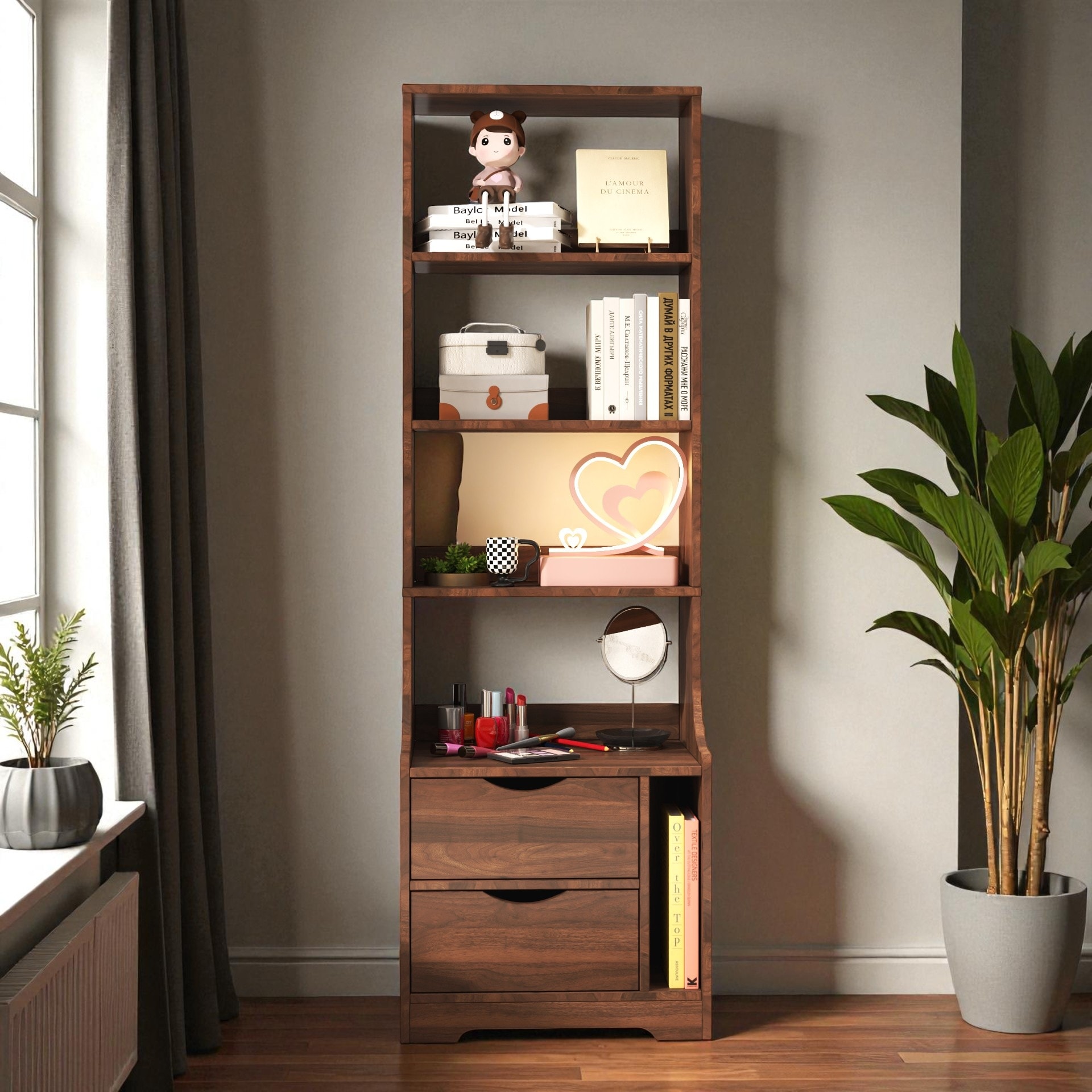 71"H 4-Tier Storage Bookcase, Corner Shelf, Asymmetrical Shelves, Small Space