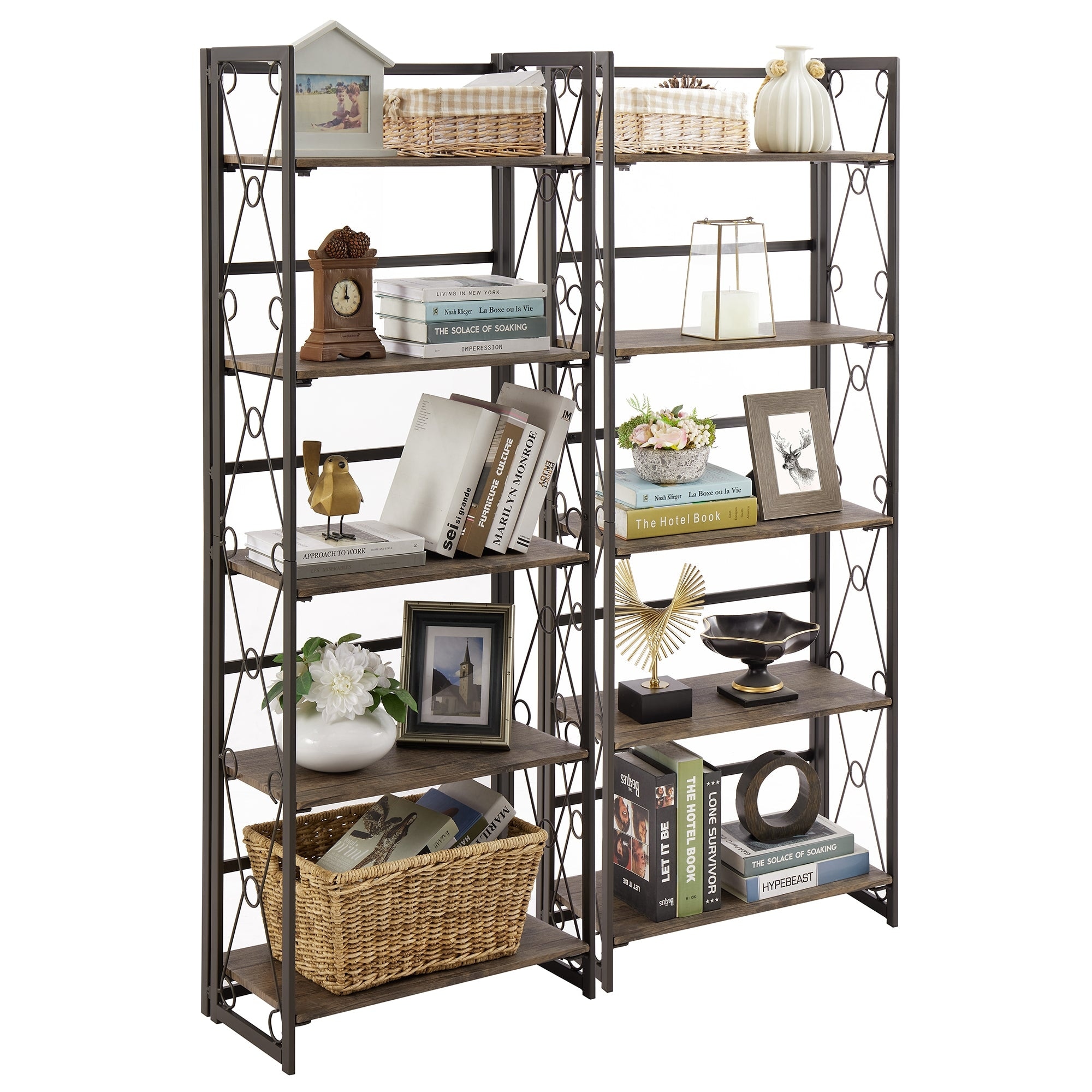 VECELO 62" Foldable 5-Tier Bookshelf Space Saving Tall Open Bookcase with MDF Shelves for Living Room Home Office Kitchen