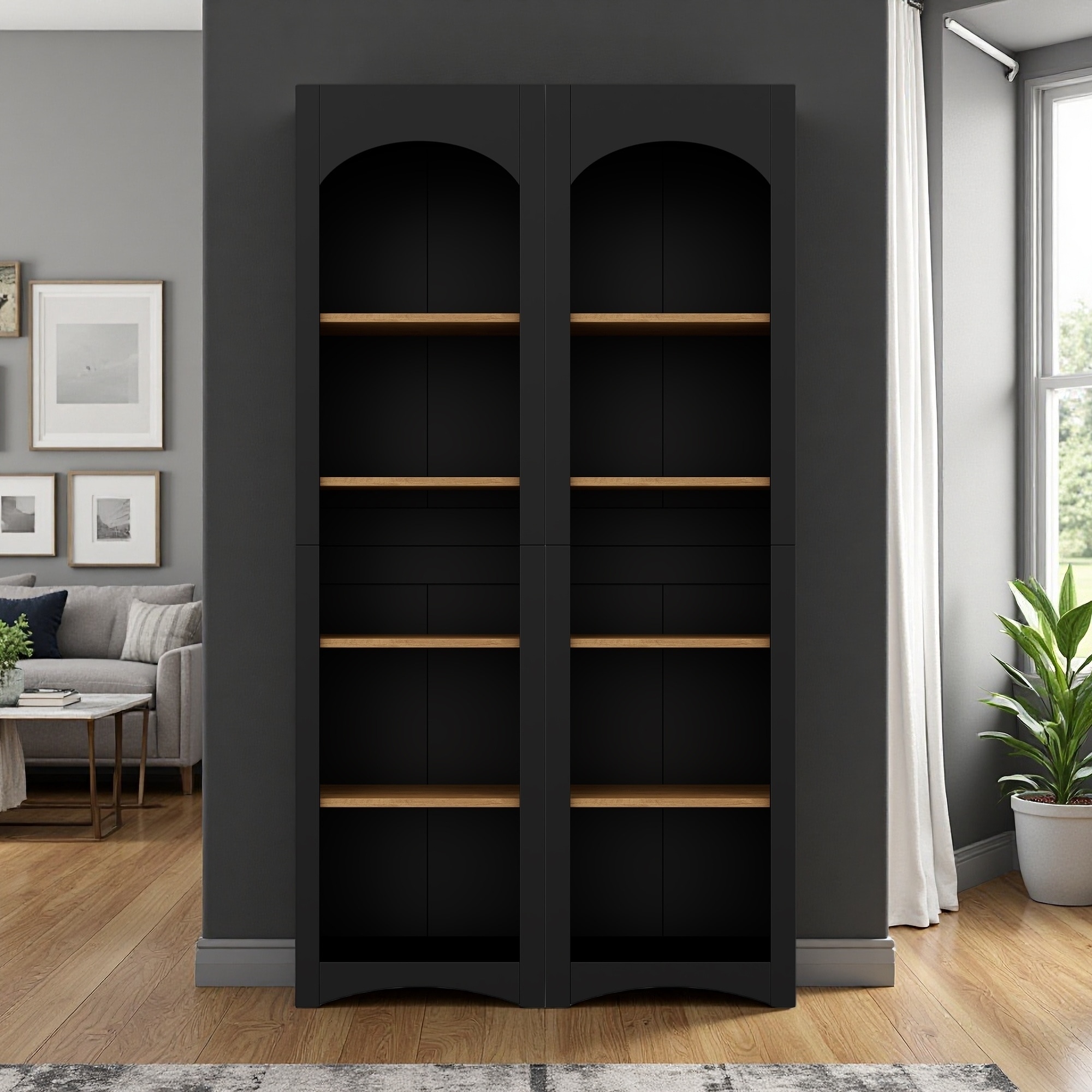 72"H Two-Tone Freestanding 5-Tier Bookshelves, Adjustable Shelves, Storage Cabinet Set