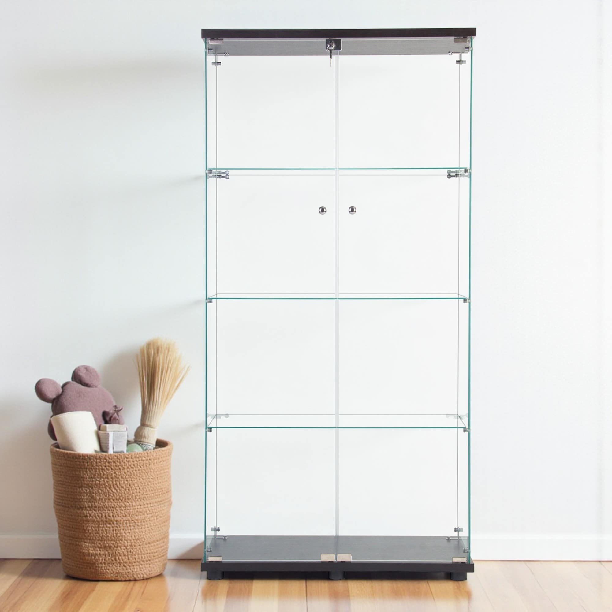 Modern Tempered Glass Display Cabinet with Lights and Locks