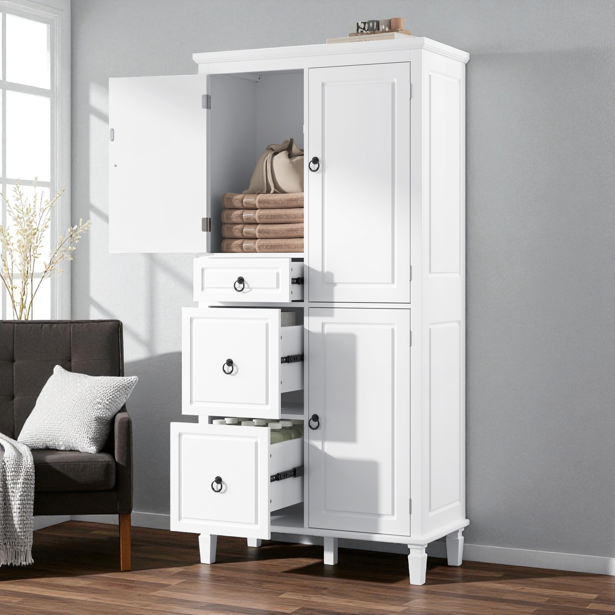 61.7" Multi-Functional Storage Cabinet with Adjustable Shelves, 3 Drawers & 3 Doors, Solid Wood Organizer for Living Room.