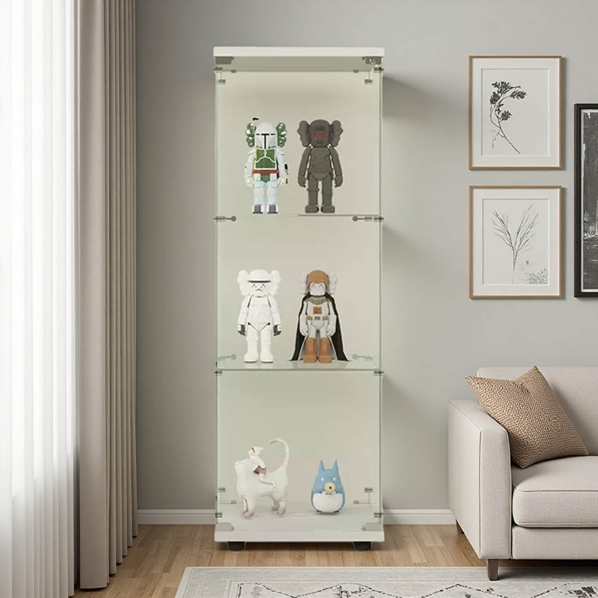 49.3"H Glass Display Cabinet, 1 Door, 3 Shelves, Tempered Glass & Wood
