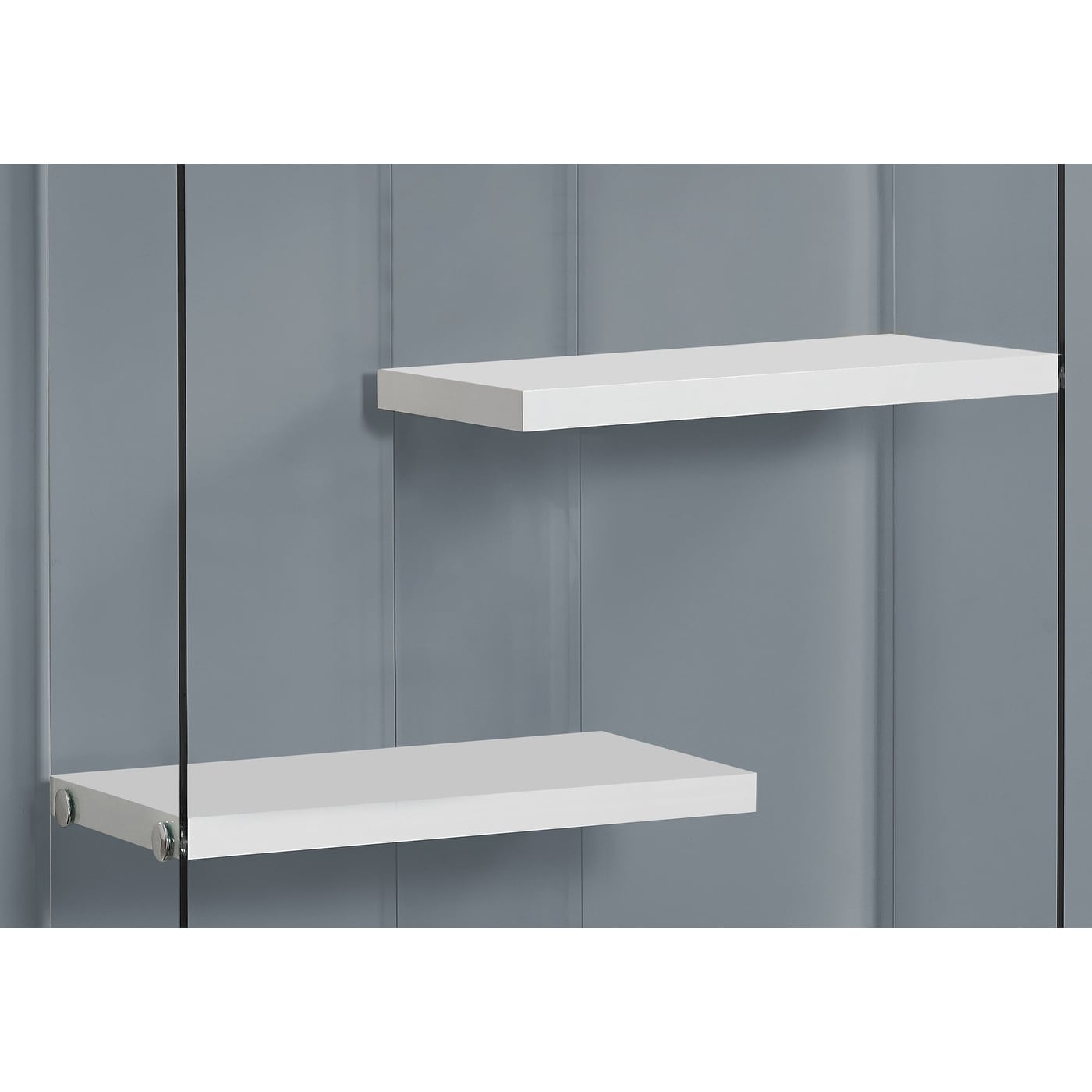 Bookshelf, Bookcase, Etagere, 5 Tier, 60"H, Office, White Laminate, Glass, Contemporary, Modern
