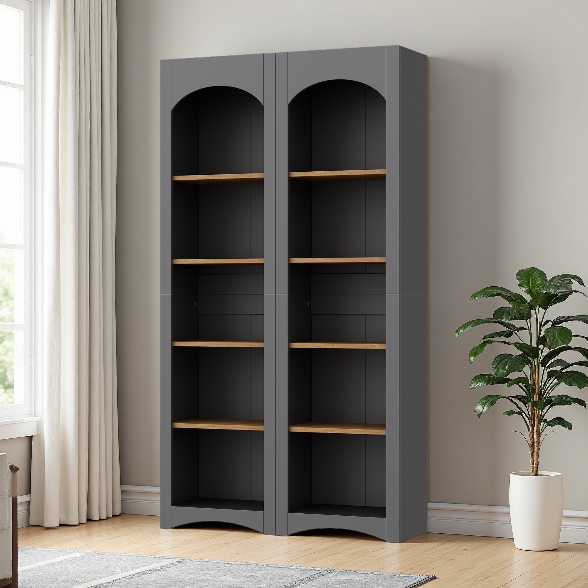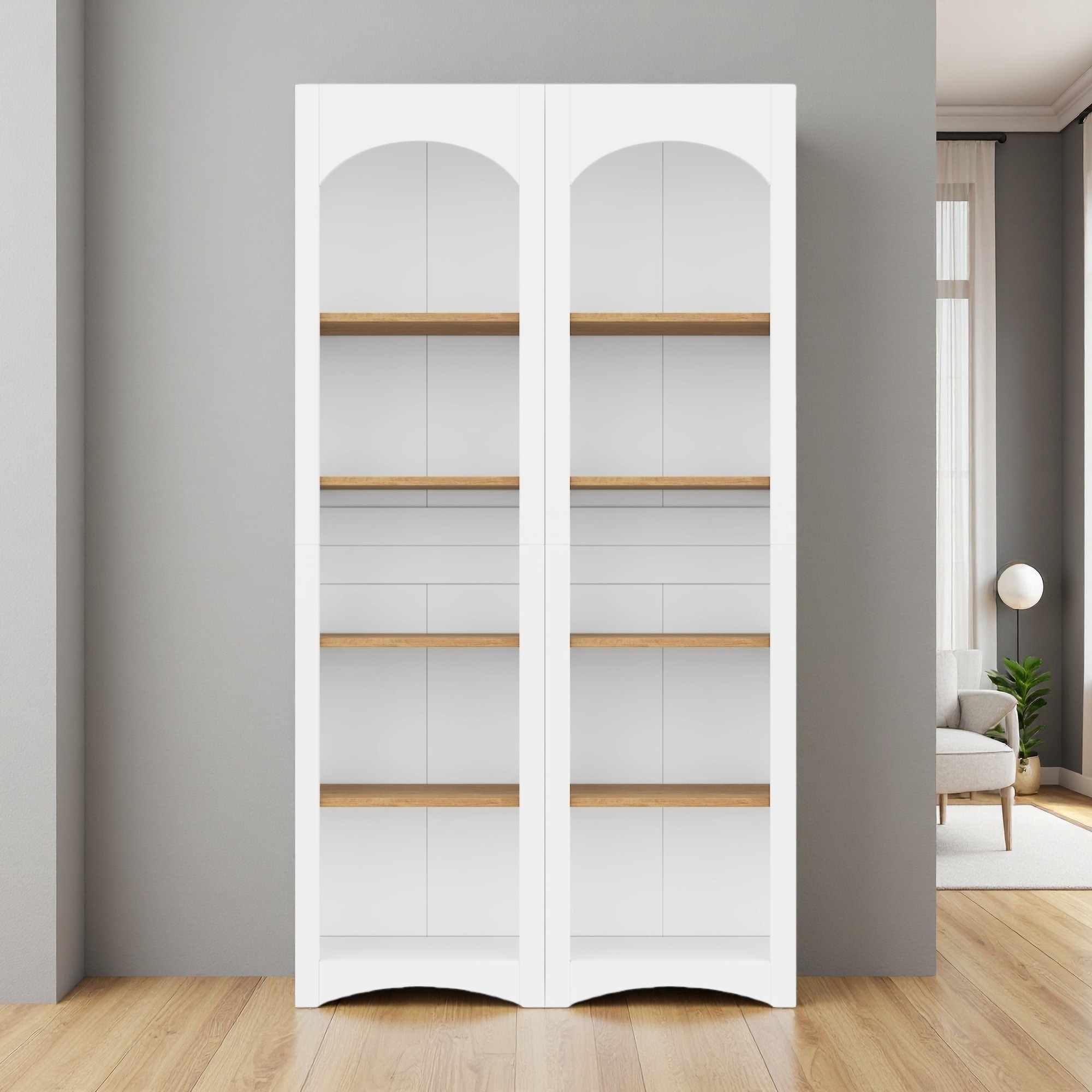 72"H Two-Tone Freestanding 5-Tier Bookshelves, Adjustable Shelves, Storage Cabinet Set