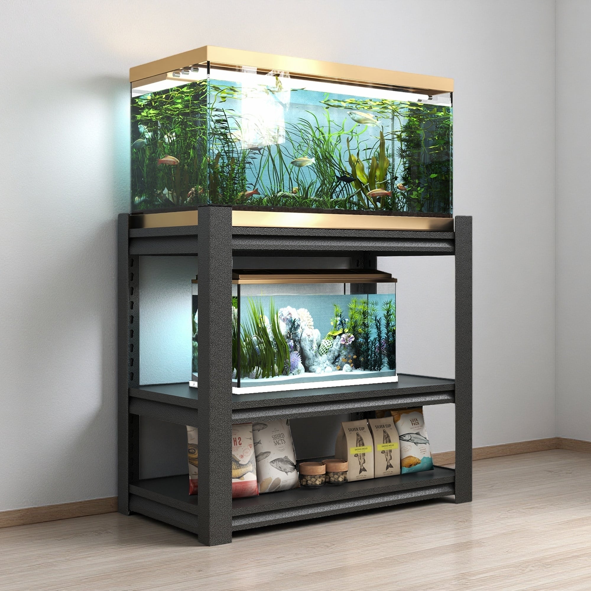 34"W Adjustable Heavy Duty Metal Fish Tank Stand, 20-30 Gallon Capacity, Sturdy 3-Tier Rack with Protective Floor Pads for Home