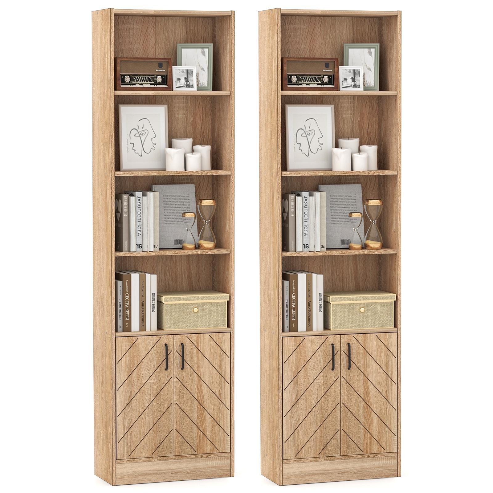Gymax 2 PCS 71'' Bookshelf w/2-Door Cabinet 6-Tier Bookcase Tall